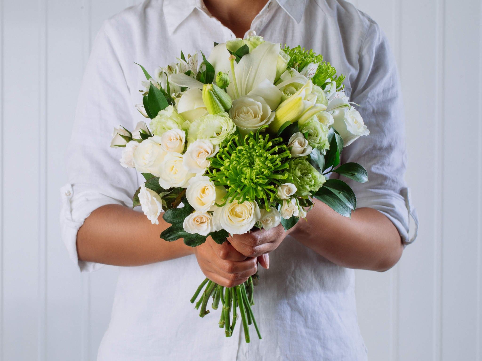 4.6Buquê de Rosas, Lisianthus e Altroemérias Brancas