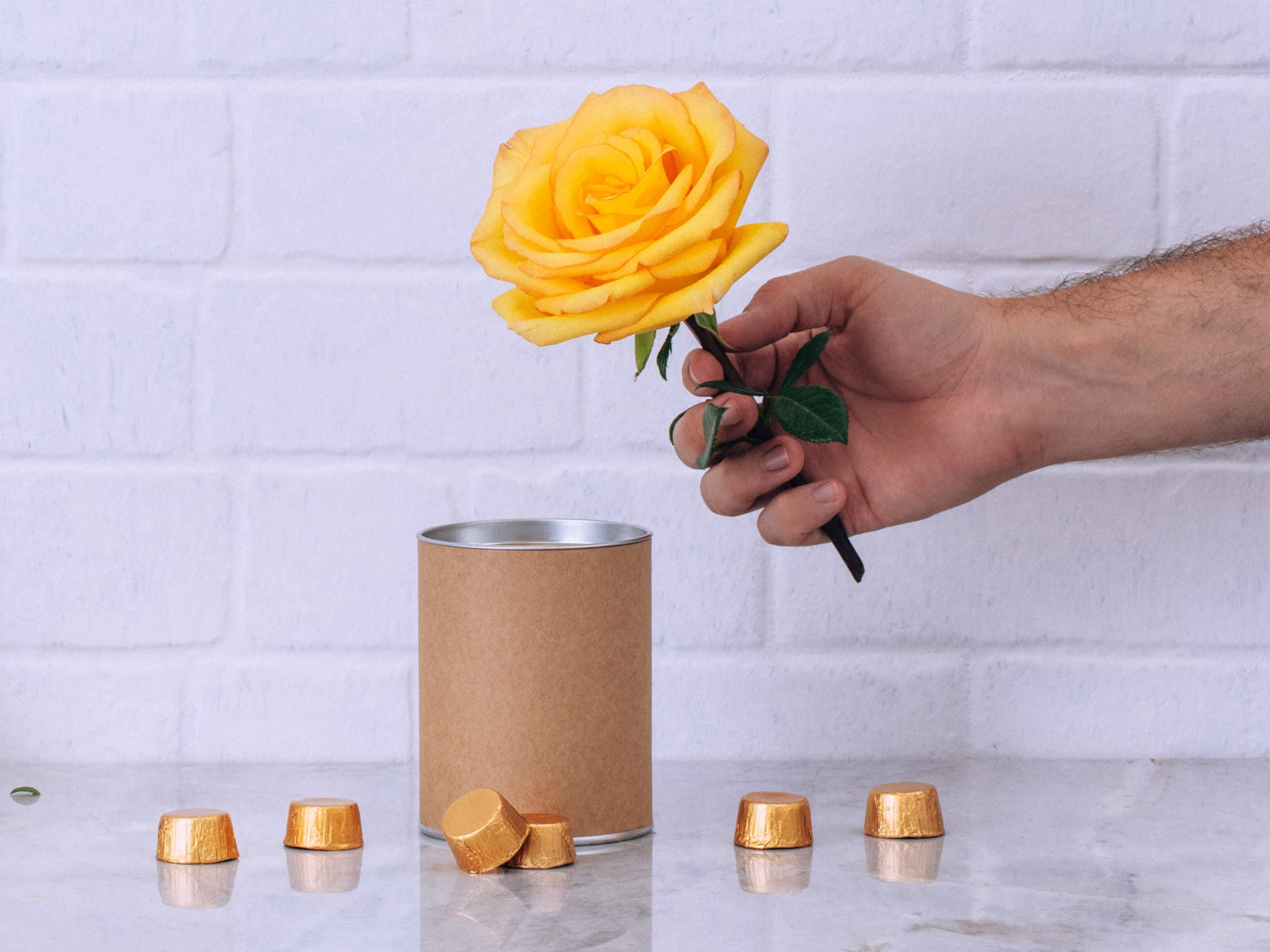 Rosa Colombiana Amarela com Bombons de Chocolate Le Delice