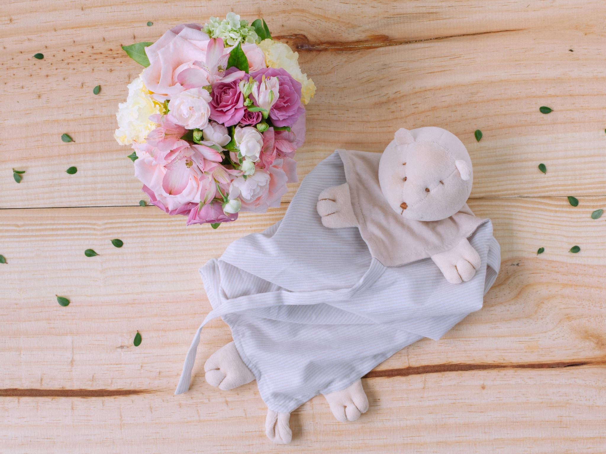 4.6Cesta de Presente Maternidade com Flores e Urso Naninha