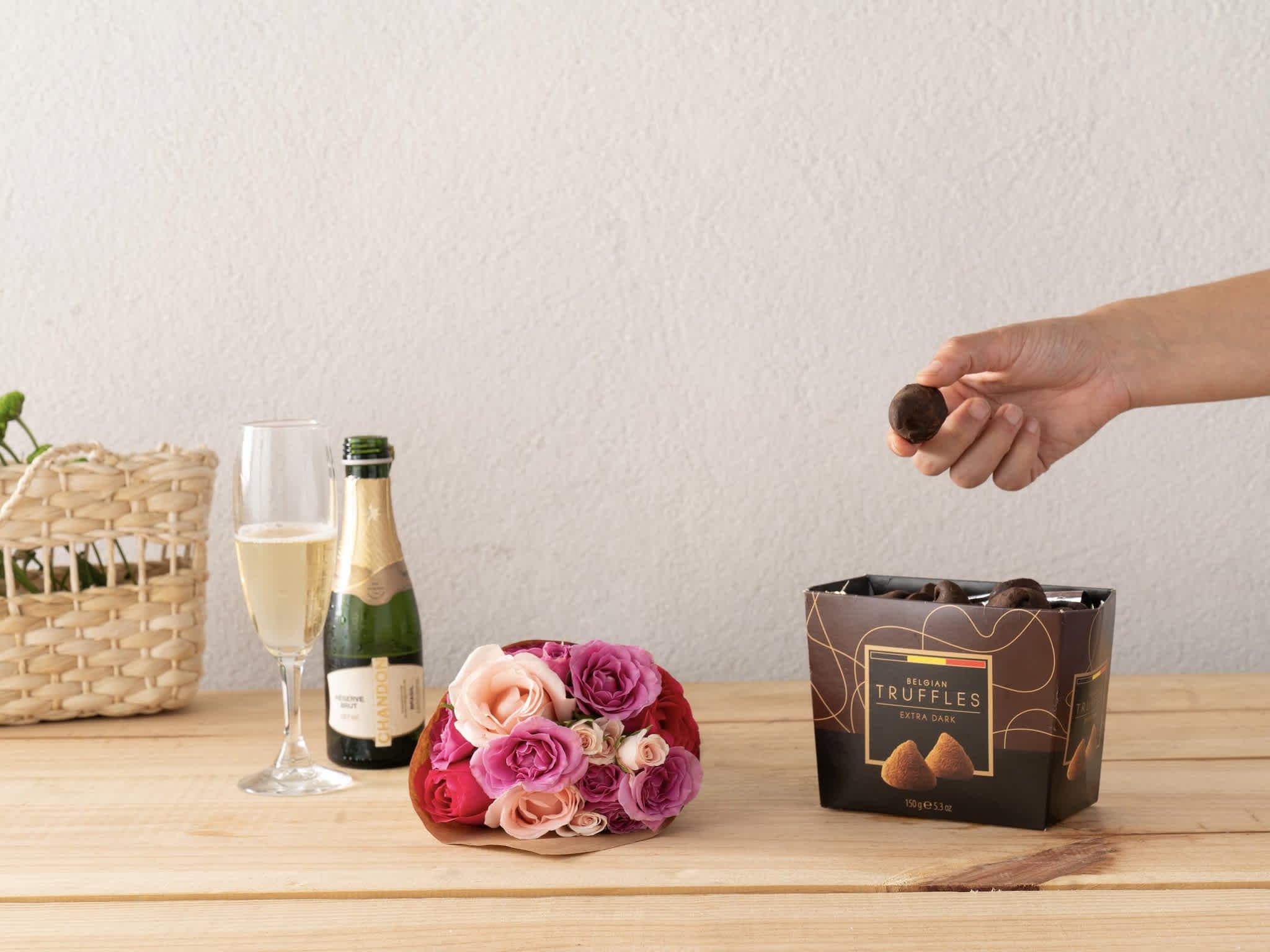 Buquê Primavera, Trufas e Baby Chandon Para Entrega