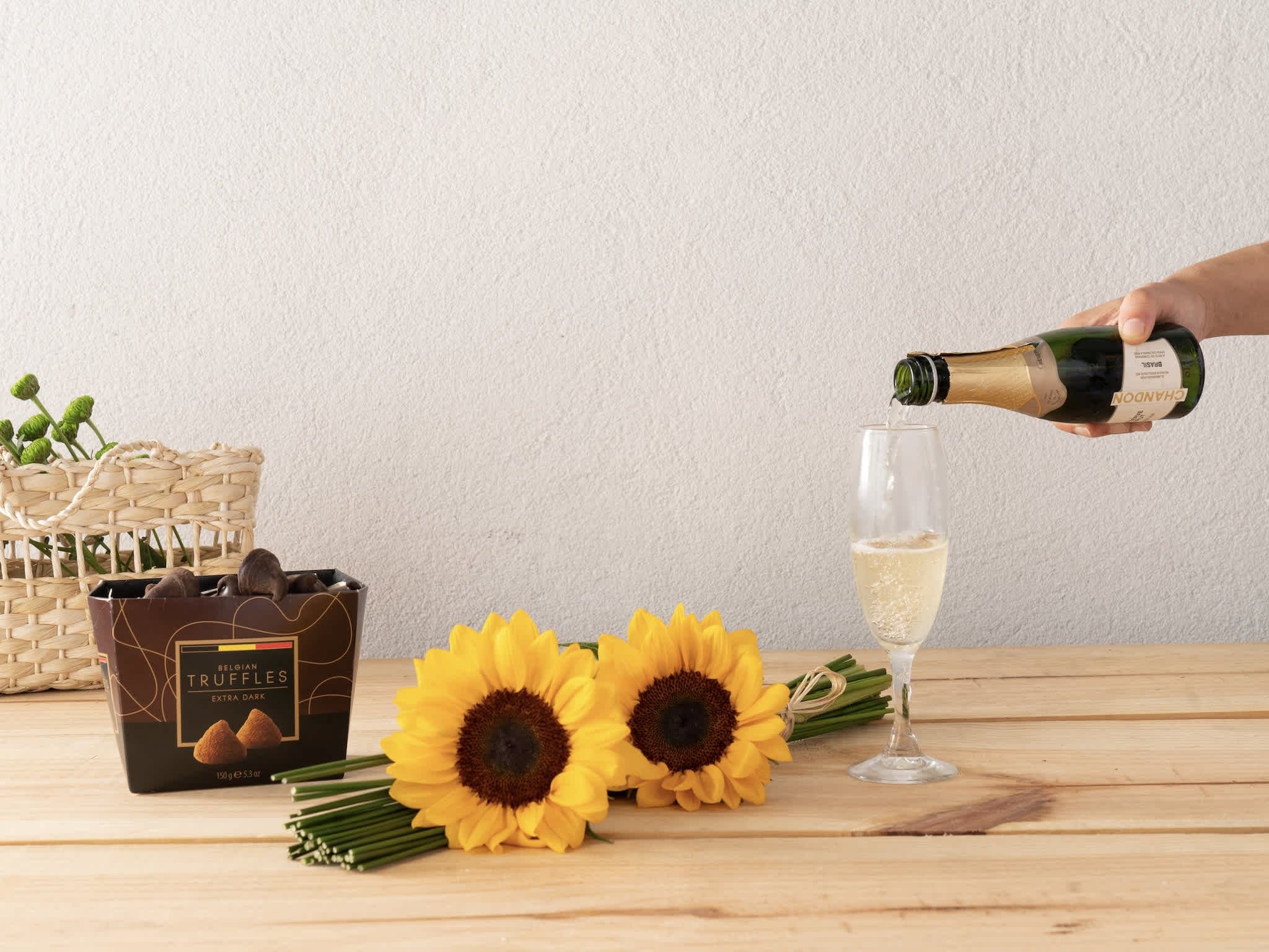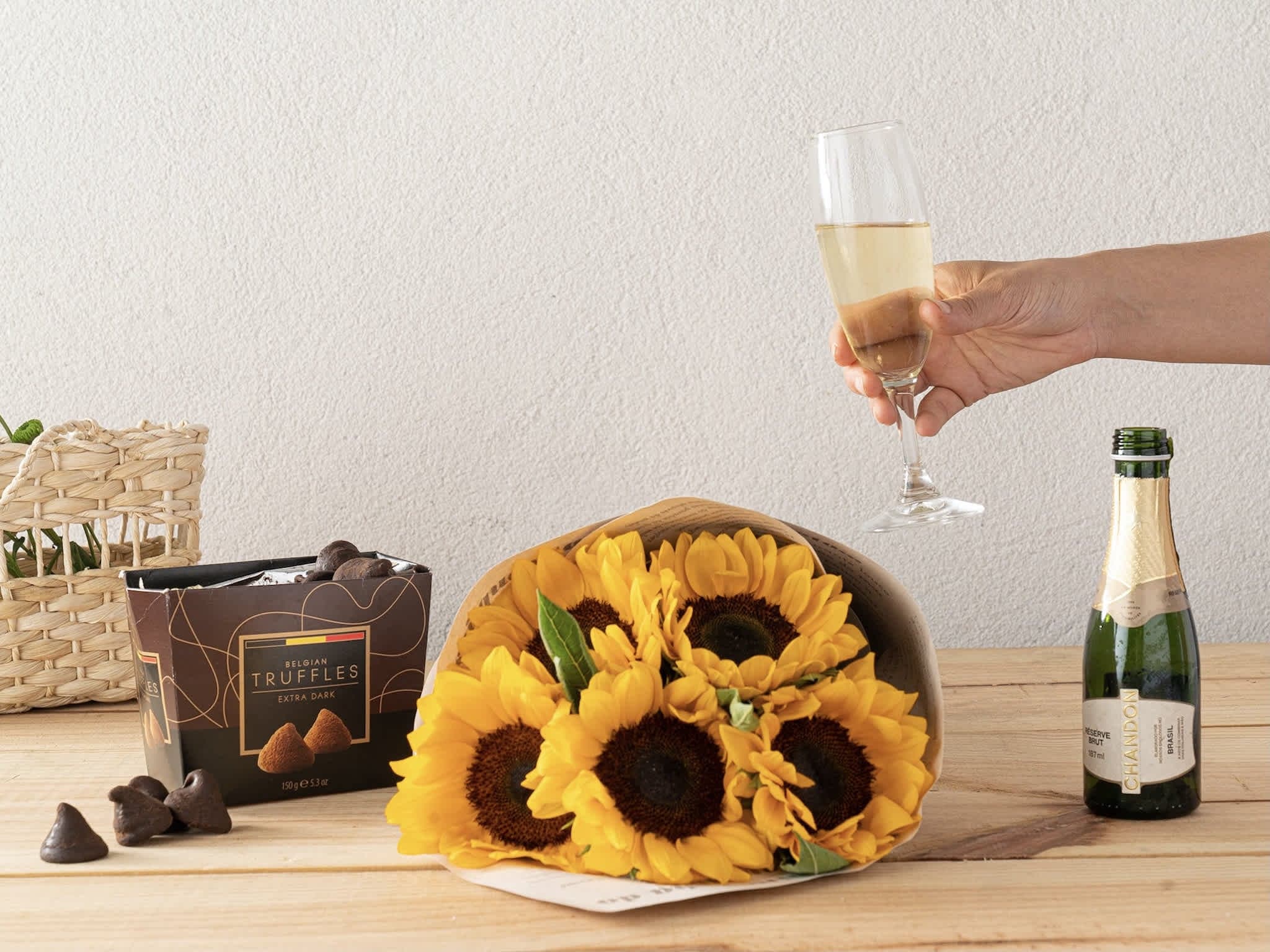 Girassóis, Trufas e Baby Chandon Para Entrega