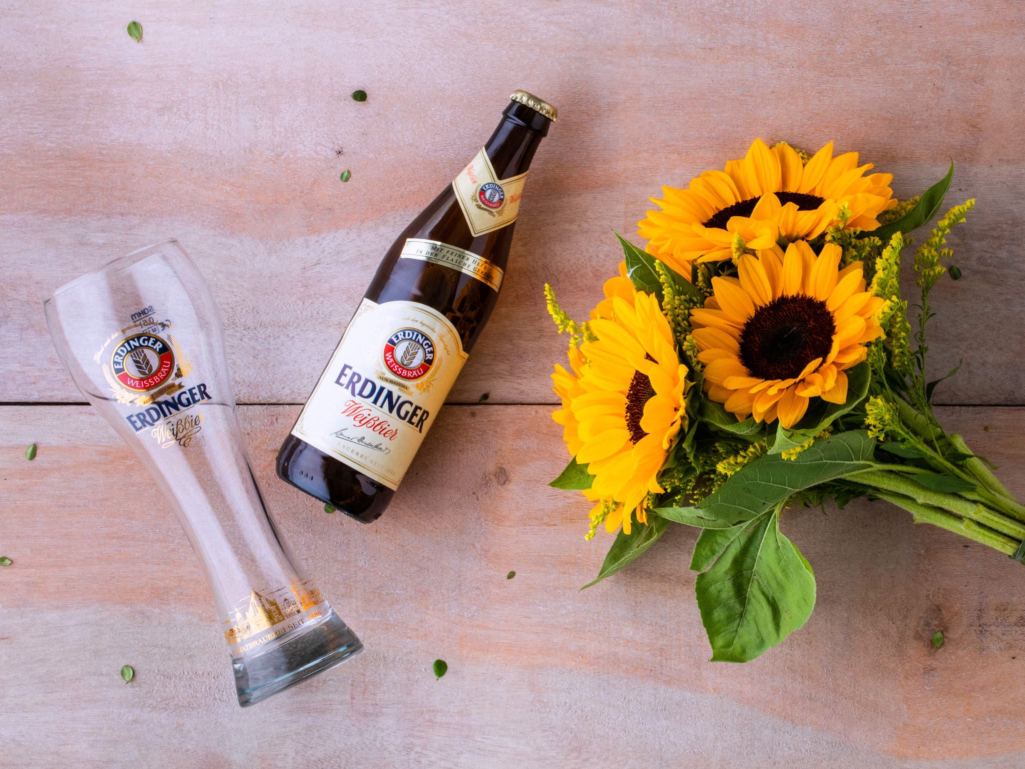 Cesta com Cerveja Erdinger e Copo e Girassol Para Entrega