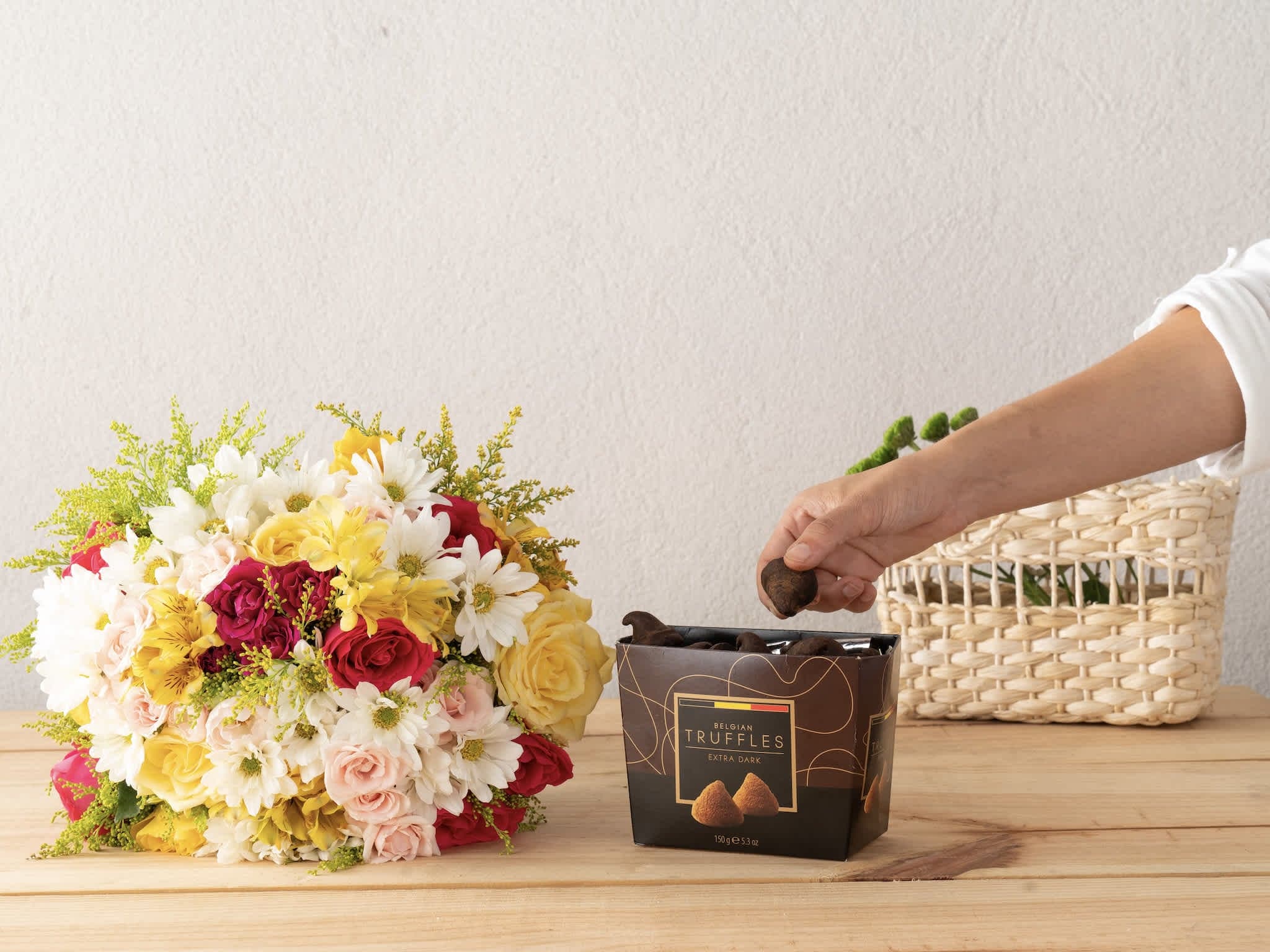 Buquê Primavera e Trufas Belgas Para Entrega