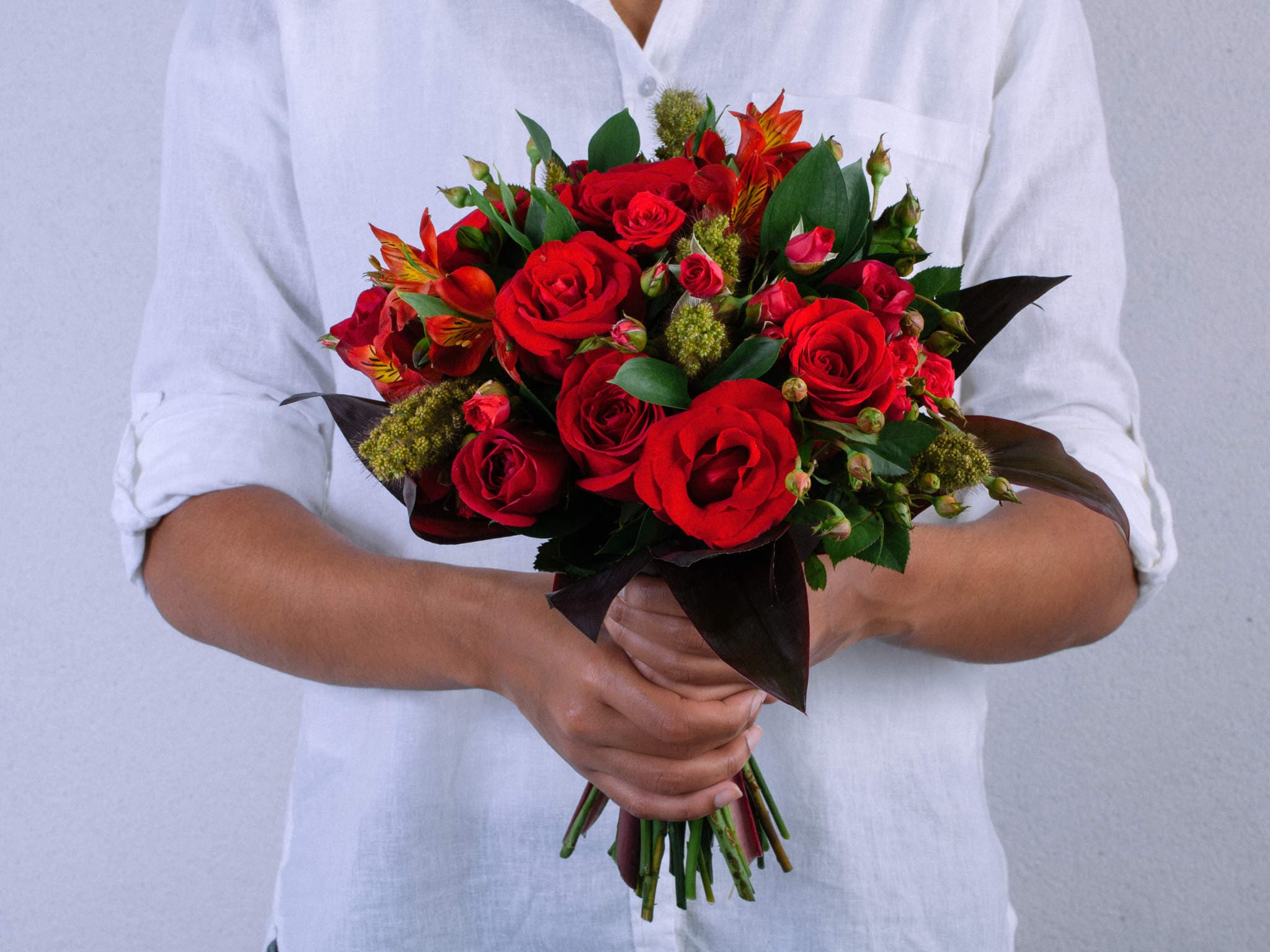 Buquê de Flores com Rosas Vermelhas e Alstromérias Para Entrega