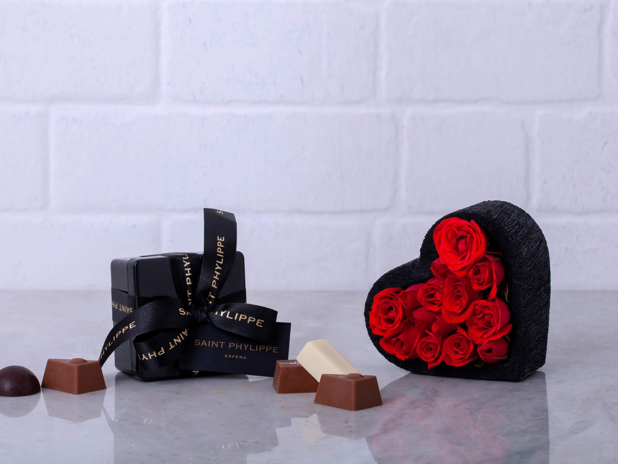 Coração de Rosas Vermelhas com Chocolate em Caixa