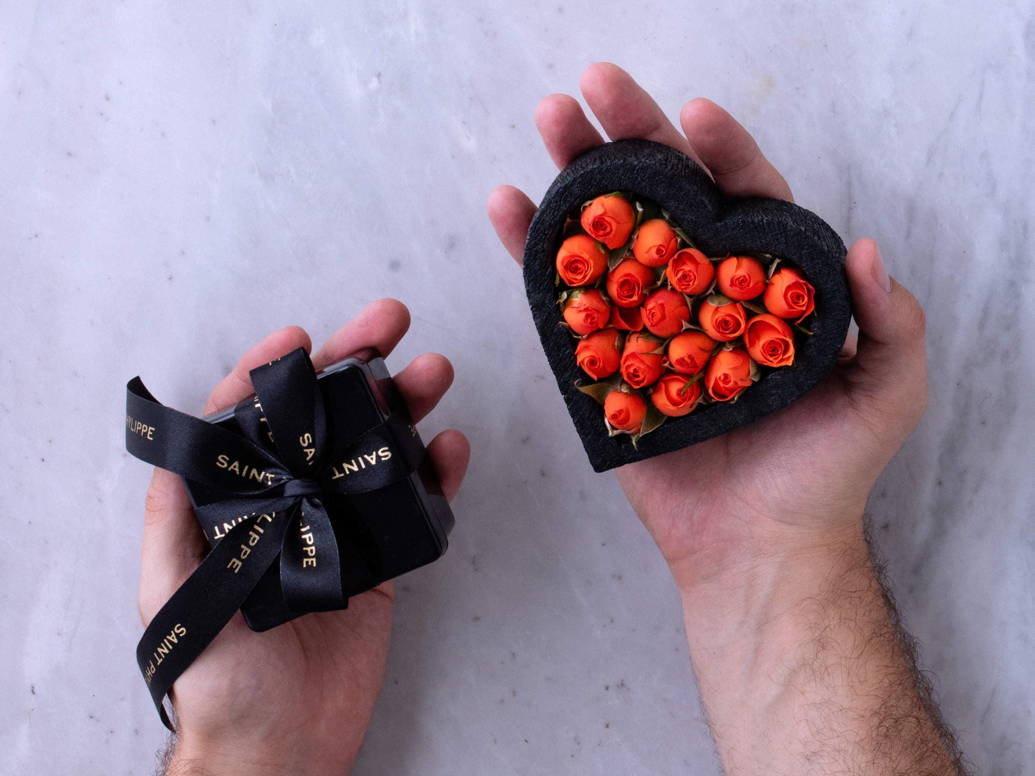 Coração de Mini Rosas Laranjas com Chocolate