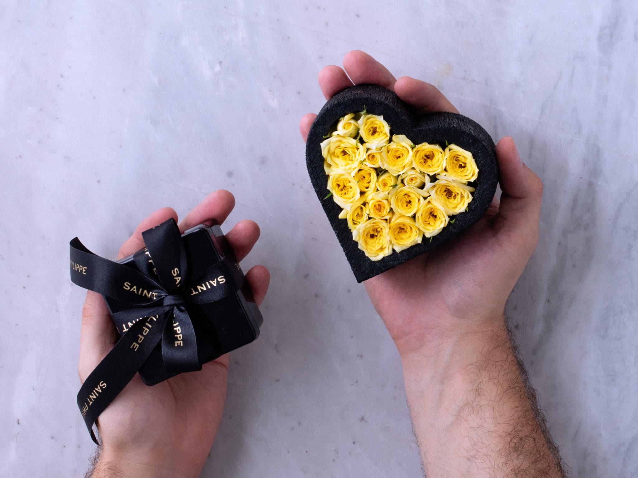 Coração de Mini Rosas Amarelas com Chocolate