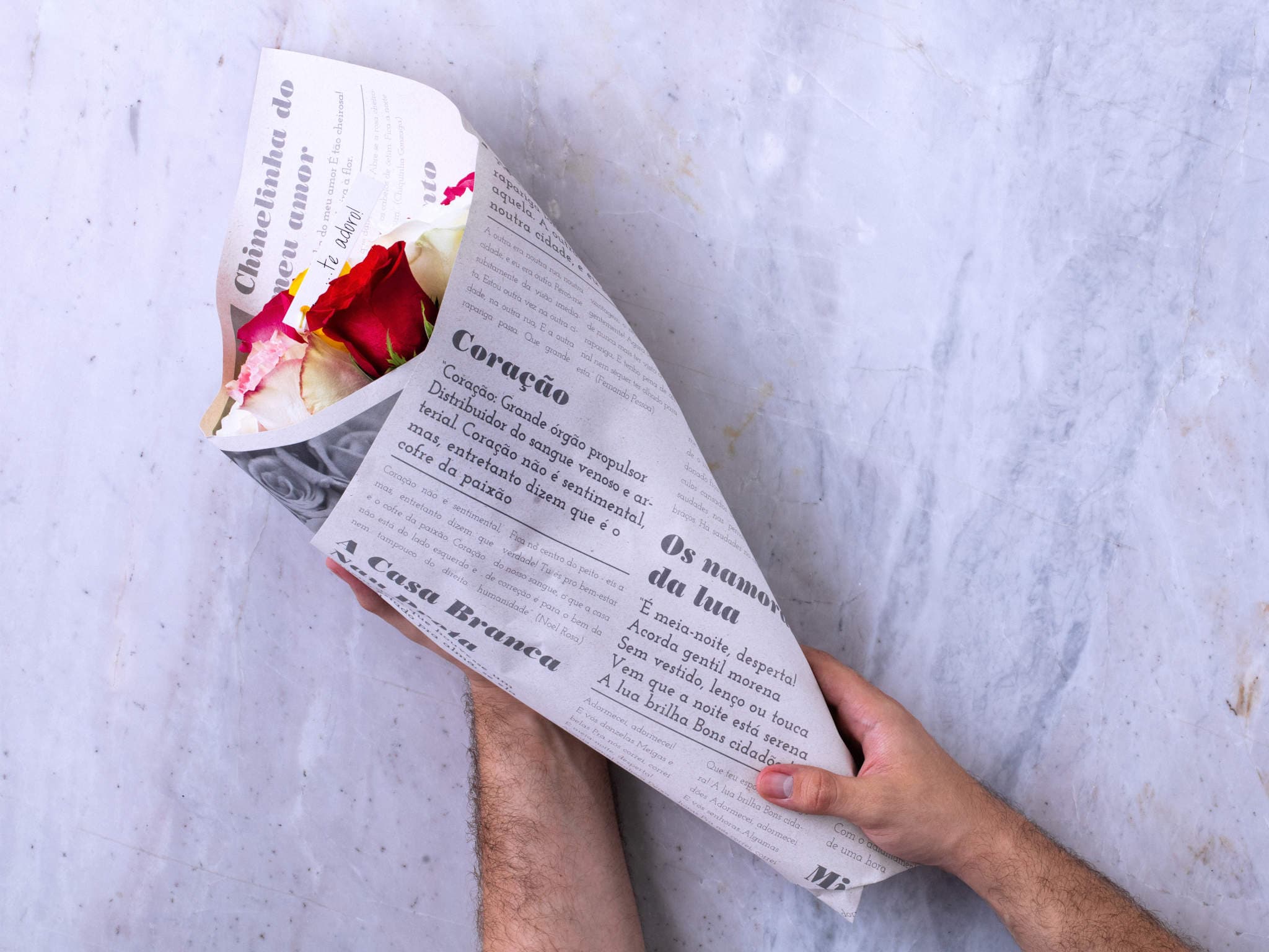Buquê de 10 Rosas Pink enrolado em Jornal Para Entrega