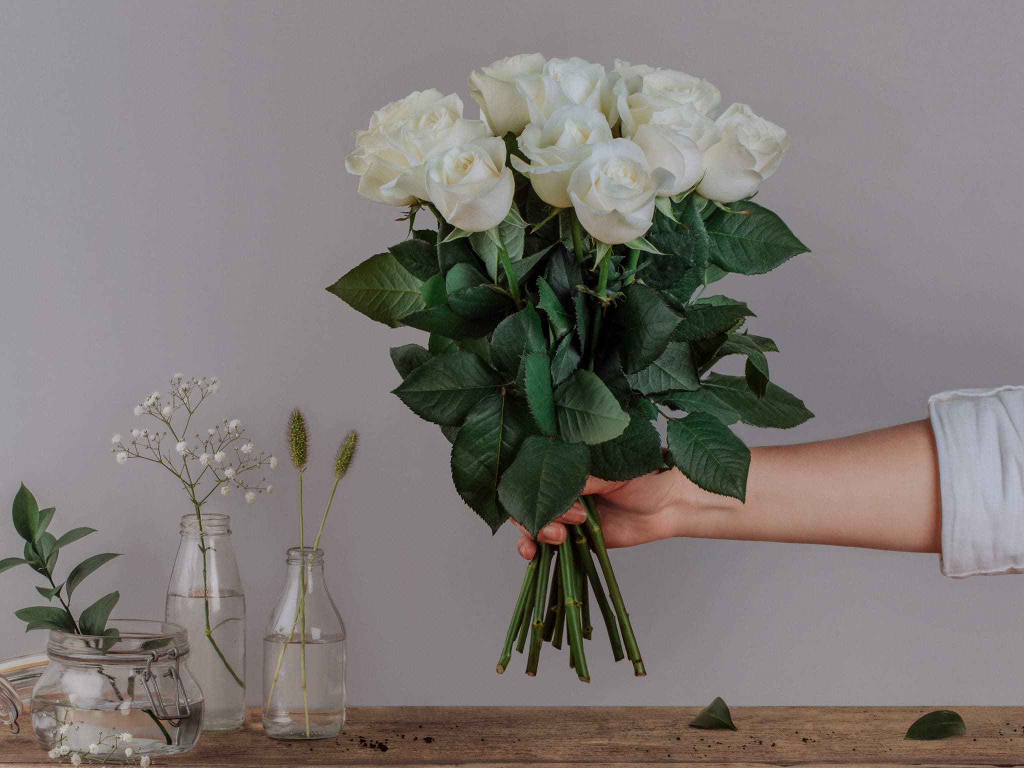 Buquê de 15 Rosas Brancas. Composição cuidadosamente preparada pela Petalá com flores frescas selecionadas, embalagem premium e cartão personalizado. Entrega expressa para todo o Brasil.