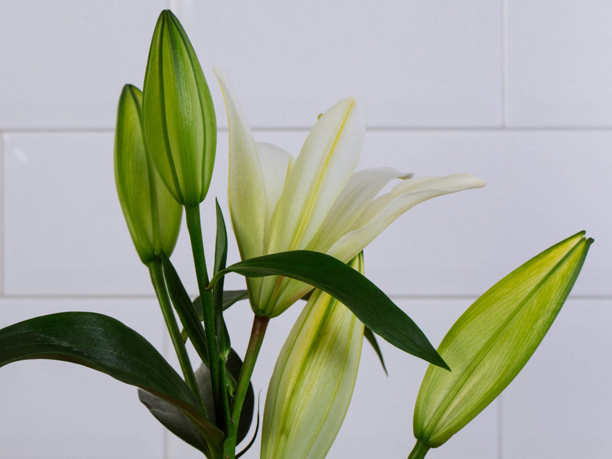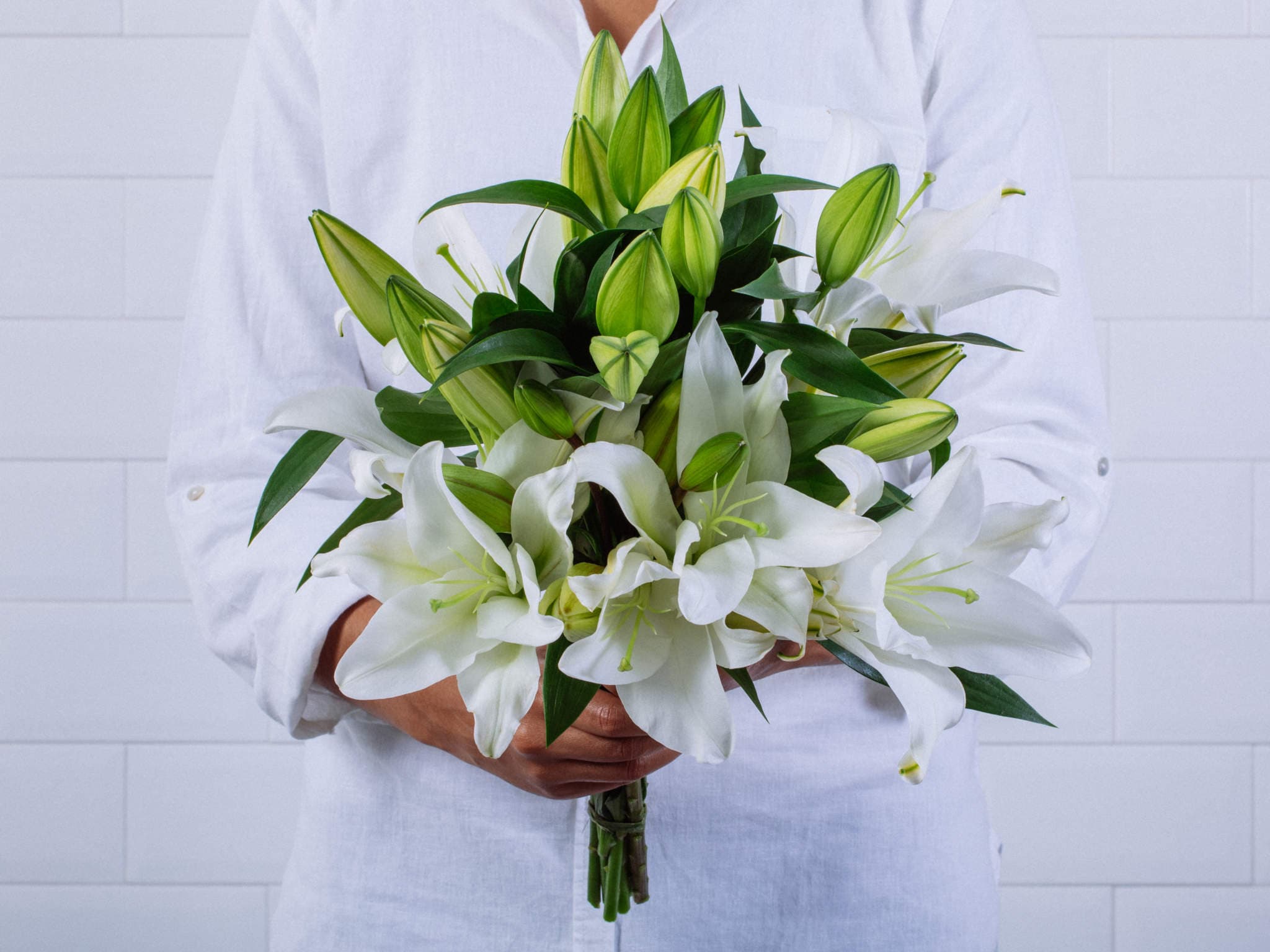 Arranjo com 6 Hastes de Lírios Brancos. Composição cuidadosamente preparada pela Petalá com flores frescas selecionadas, embalagem premium e cartão personalizado. Entrega expressa para todo o Brasil.