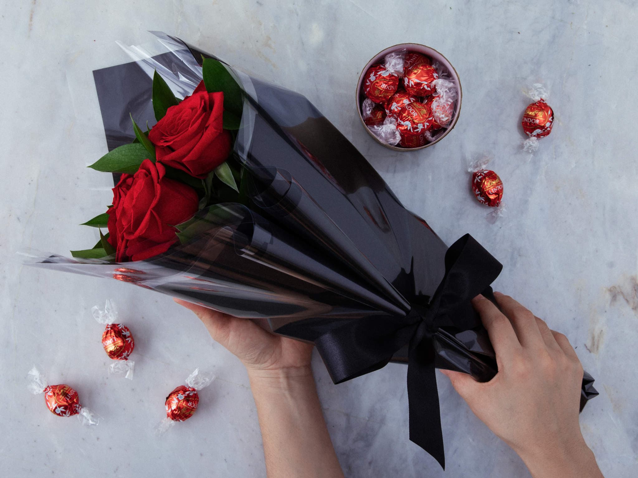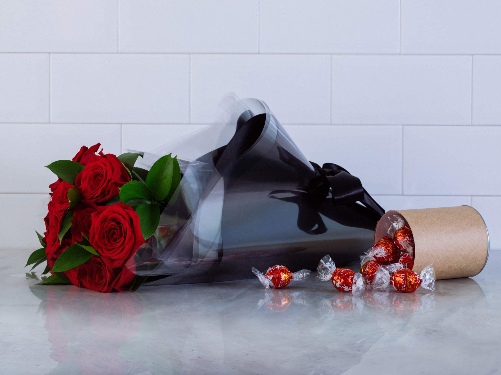 Buquê de 10 Rosas Vermelhas com Chocolate Lindt