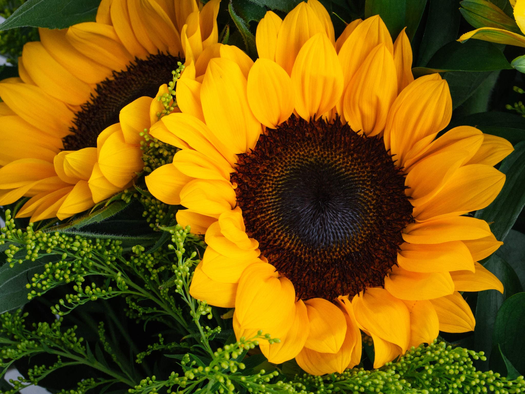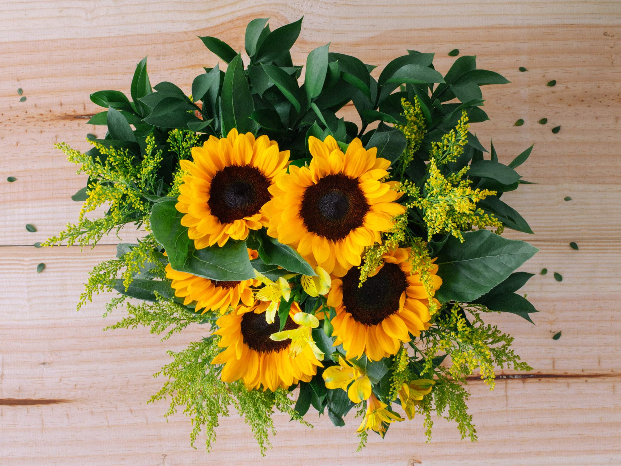 Arranjo de Girassol com Folhagem de Tango e Husco em Vaso com.... Composição cuidadosamente preparada pela Petalá com flores frescas selecionadas, embalagem premium e cartão personalizado. Entrega expressa para todo o Brasil.