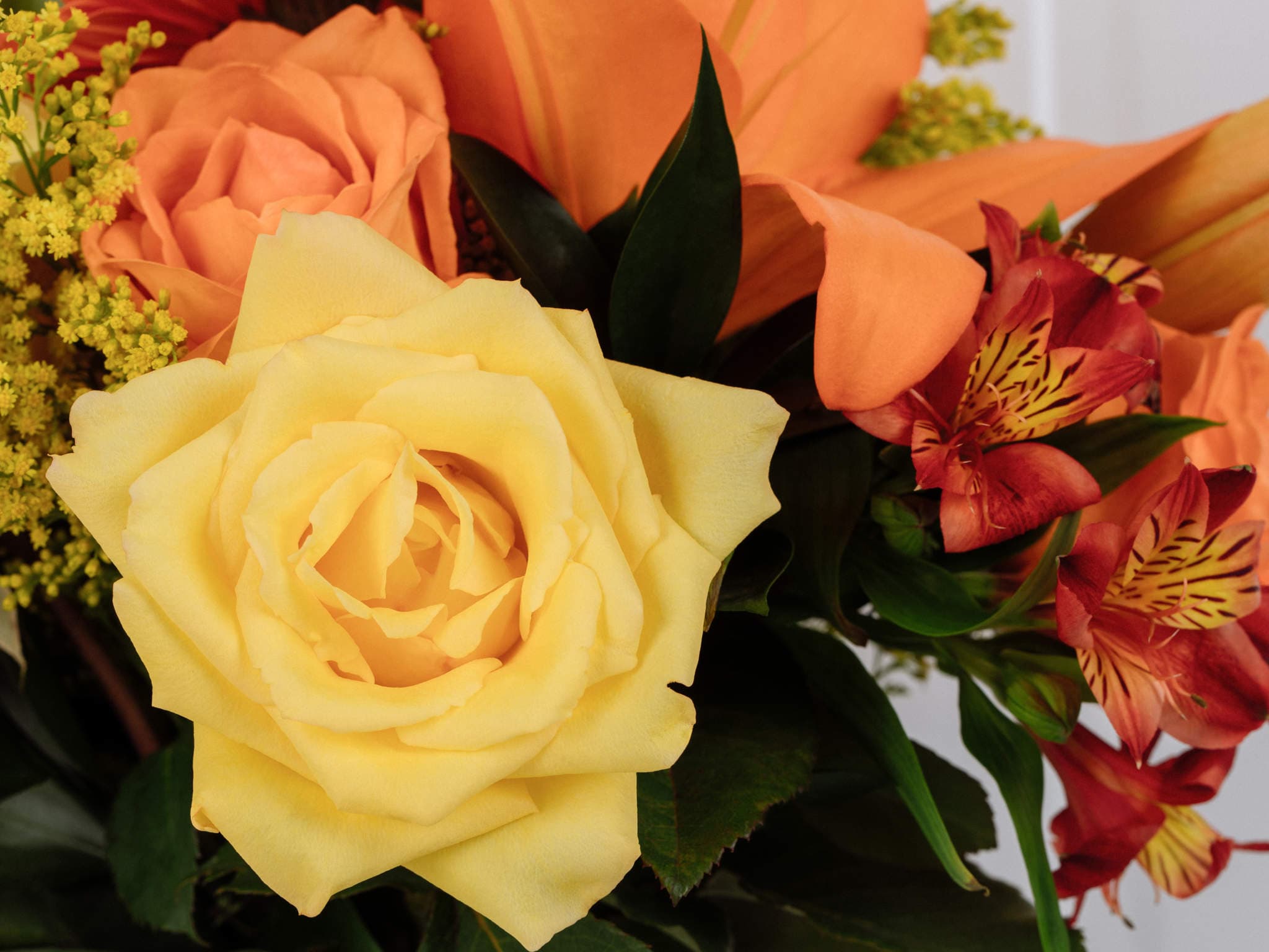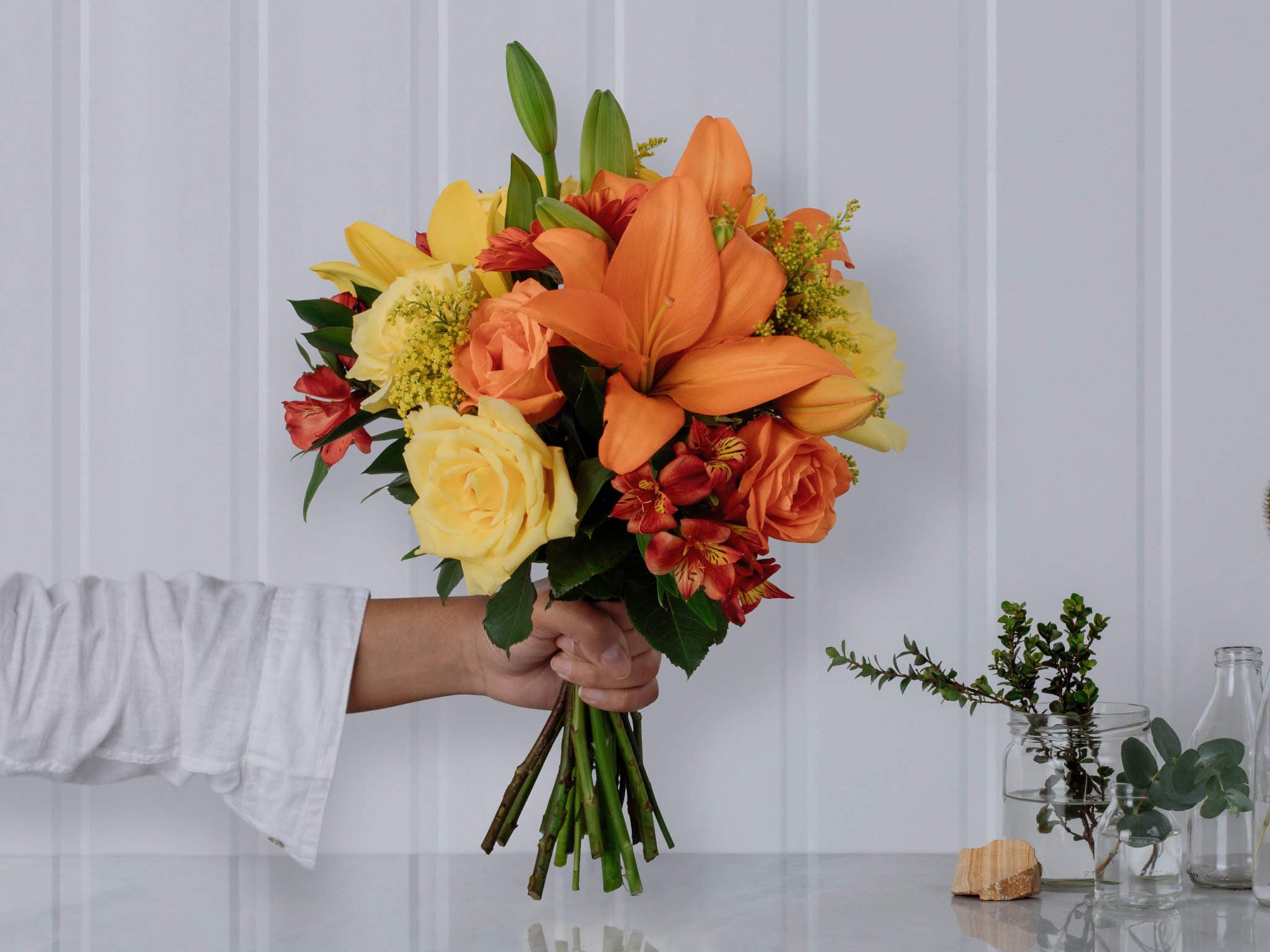 Buquê Colorido de Rosas, Alstroemérias, Gérberas e Lírios