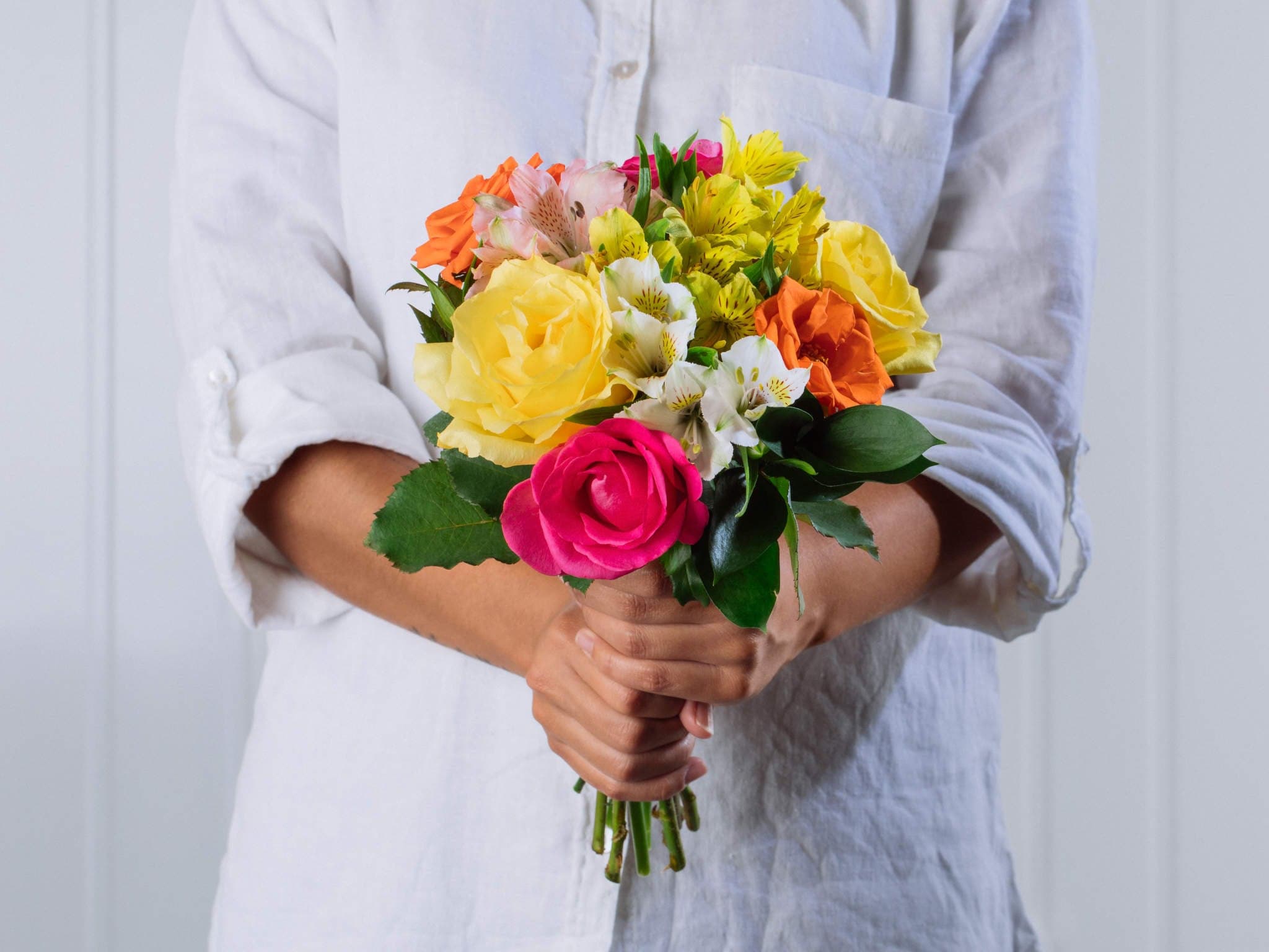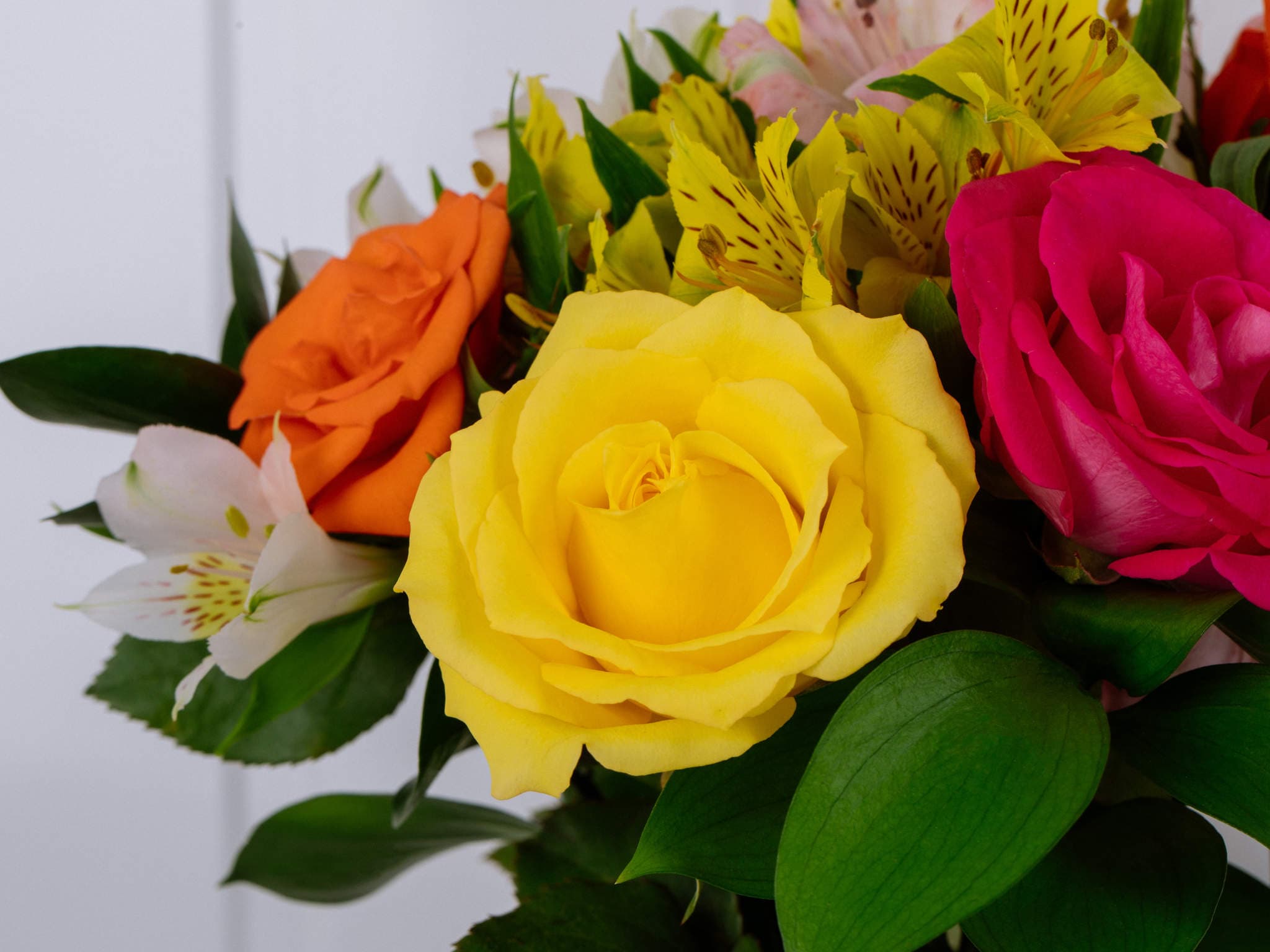 Buquê de Rosas e Alstroemérias Coloridas