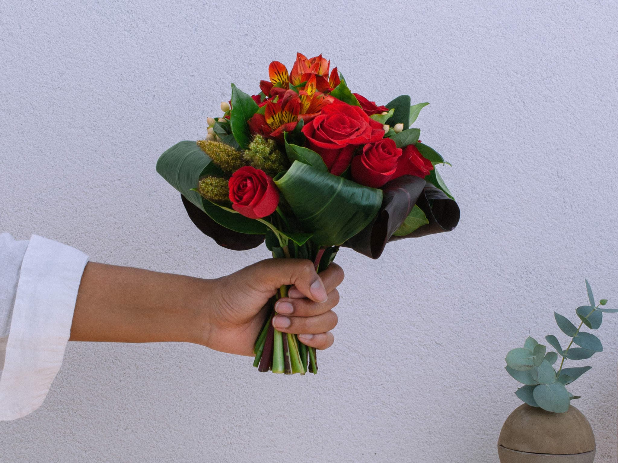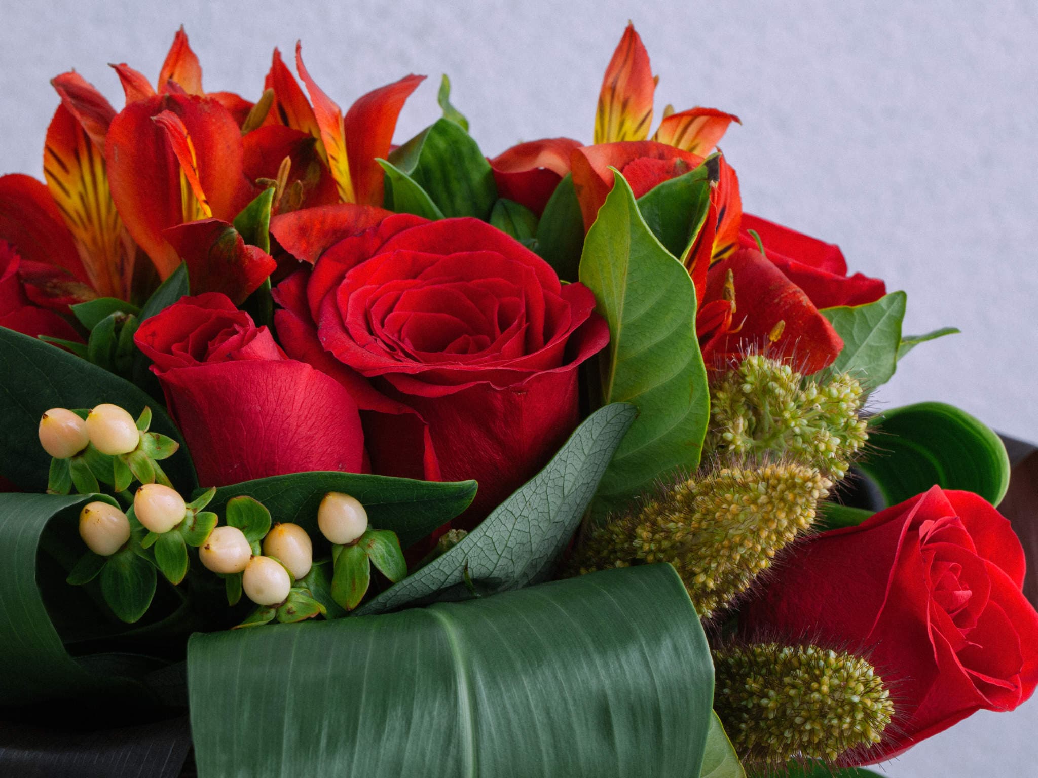 Buquê de Rosas e Alstroemérias Vermelhas