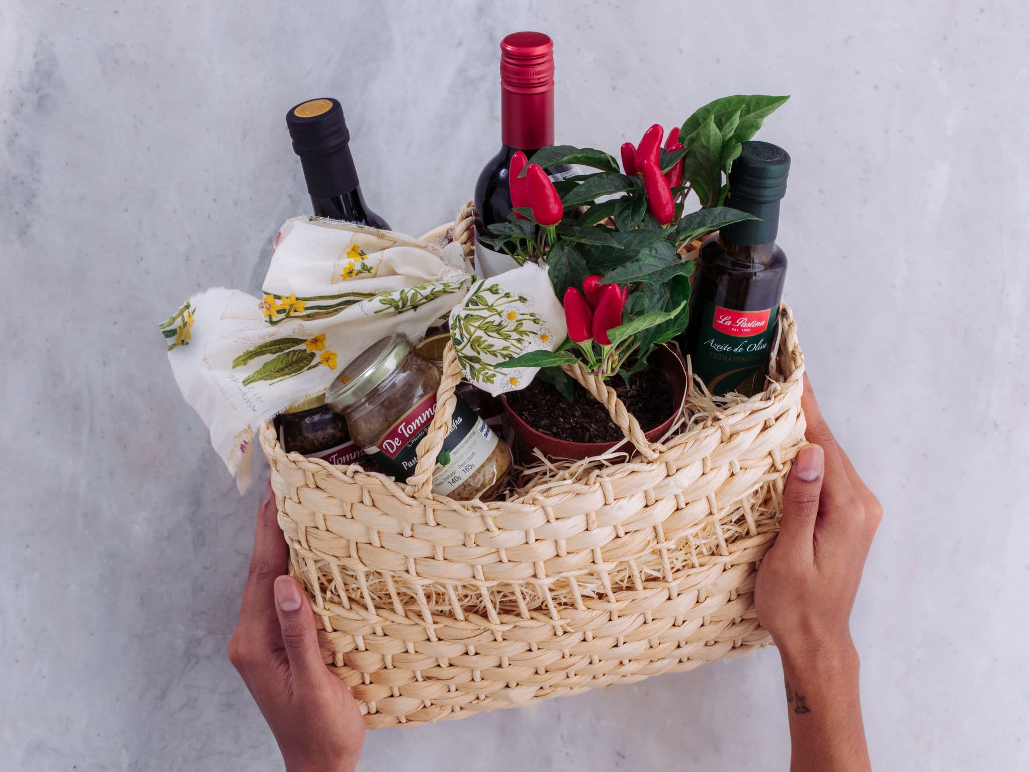 Cesta de Presente com Guloseimas e Vinho