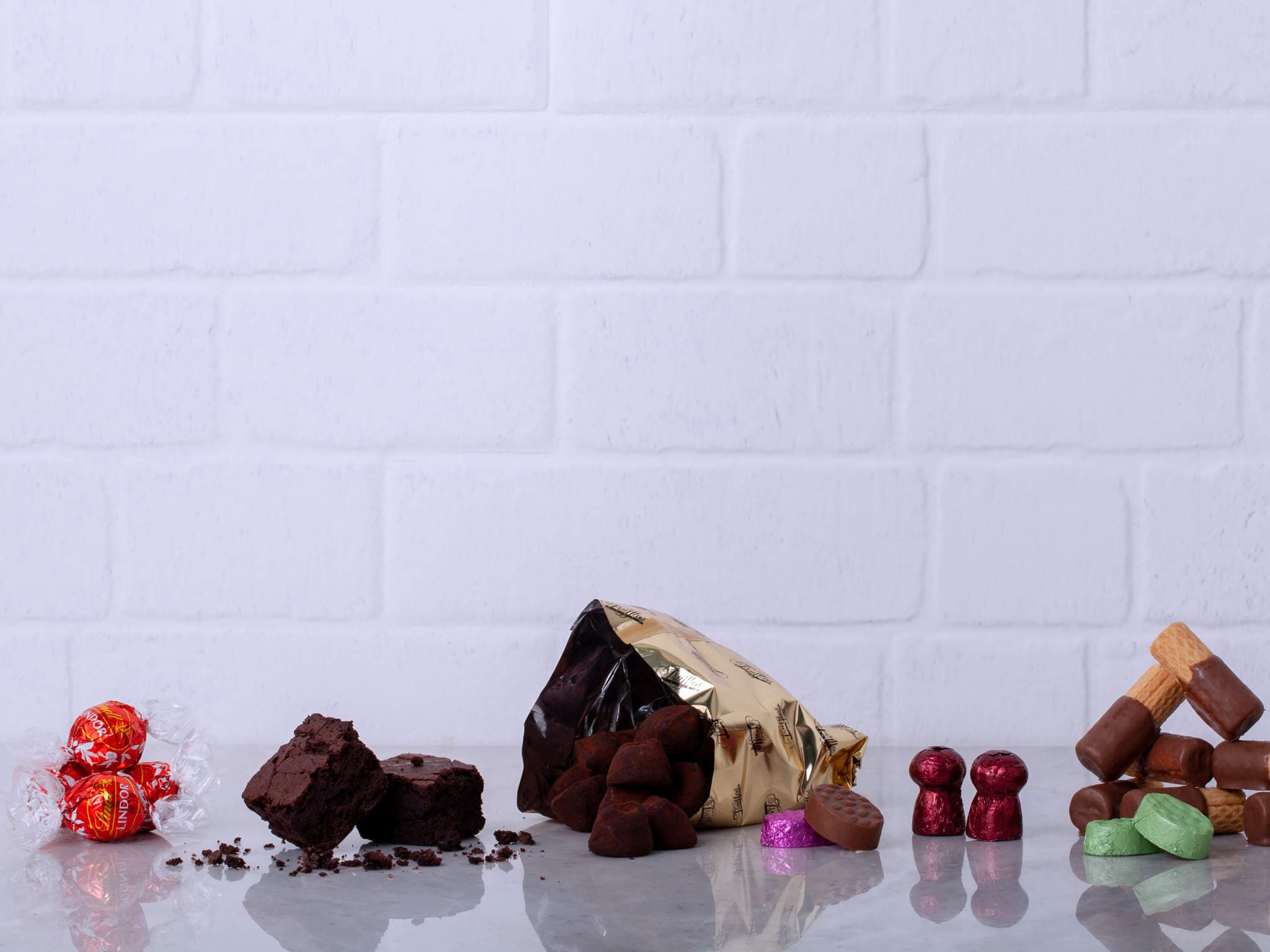Cesta de Presente com Chocolate, Trufas, Brownies e Guloseimas. Composição cuidadosamente preparada pela Petalá com flores frescas selecionadas, embalagem premium e cartão personalizado. Entrega expressa para todo o Brasil.