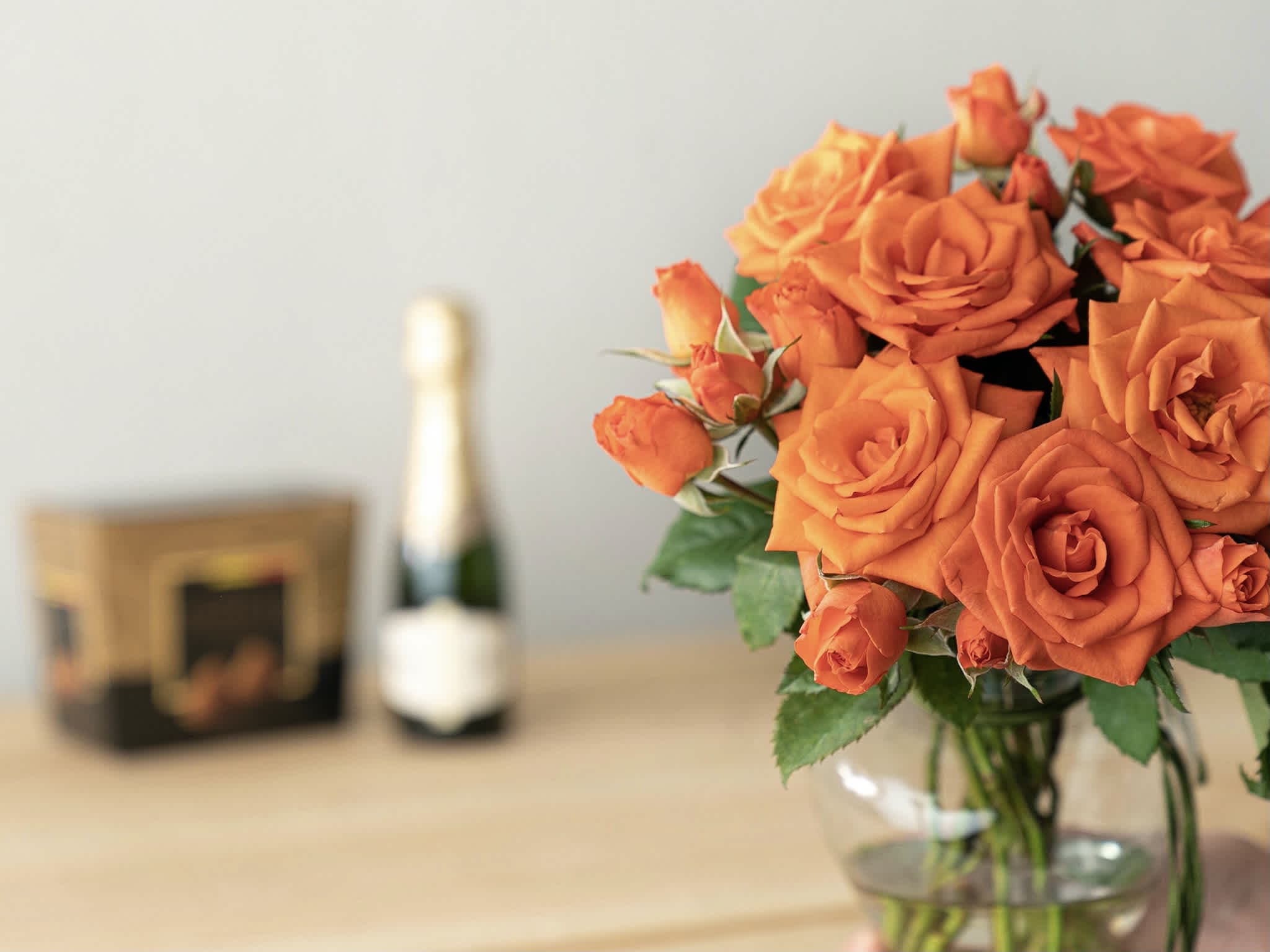 Flor de Canto Laranja, Trufas e Baby Chandon Para Entrega