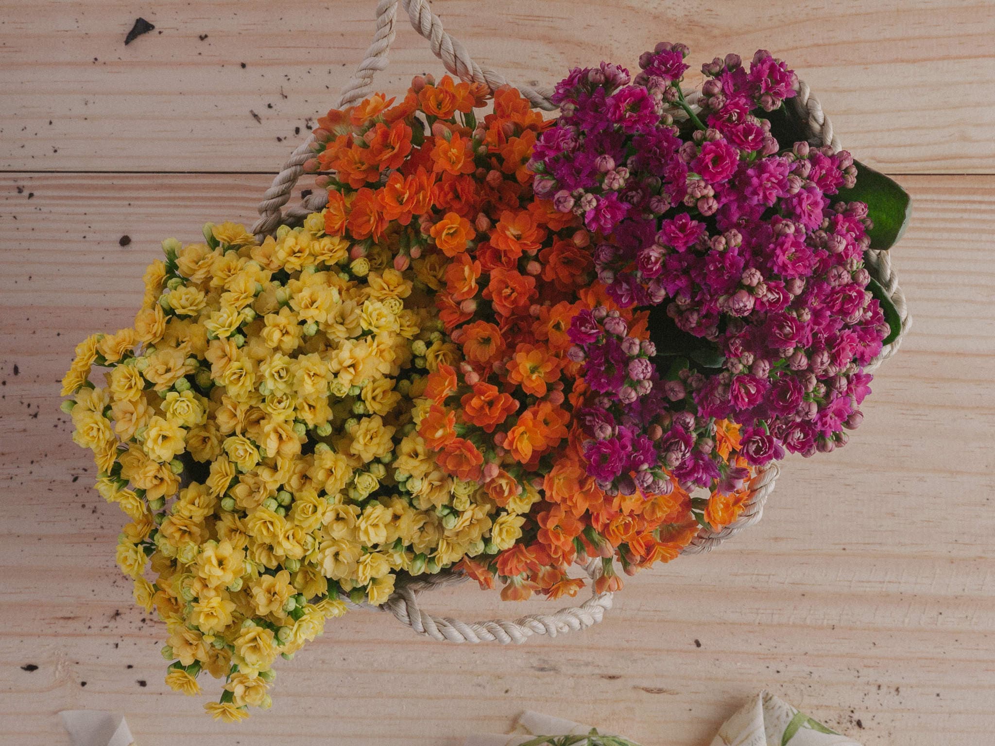 Cesta de Flores Coloridas de Kalanchoe. Composição cuidadosamente preparada pela Petalá com flores frescas selecionadas, embalagem premium e cartão personalizado. Entrega expressa para todo o Brasil.