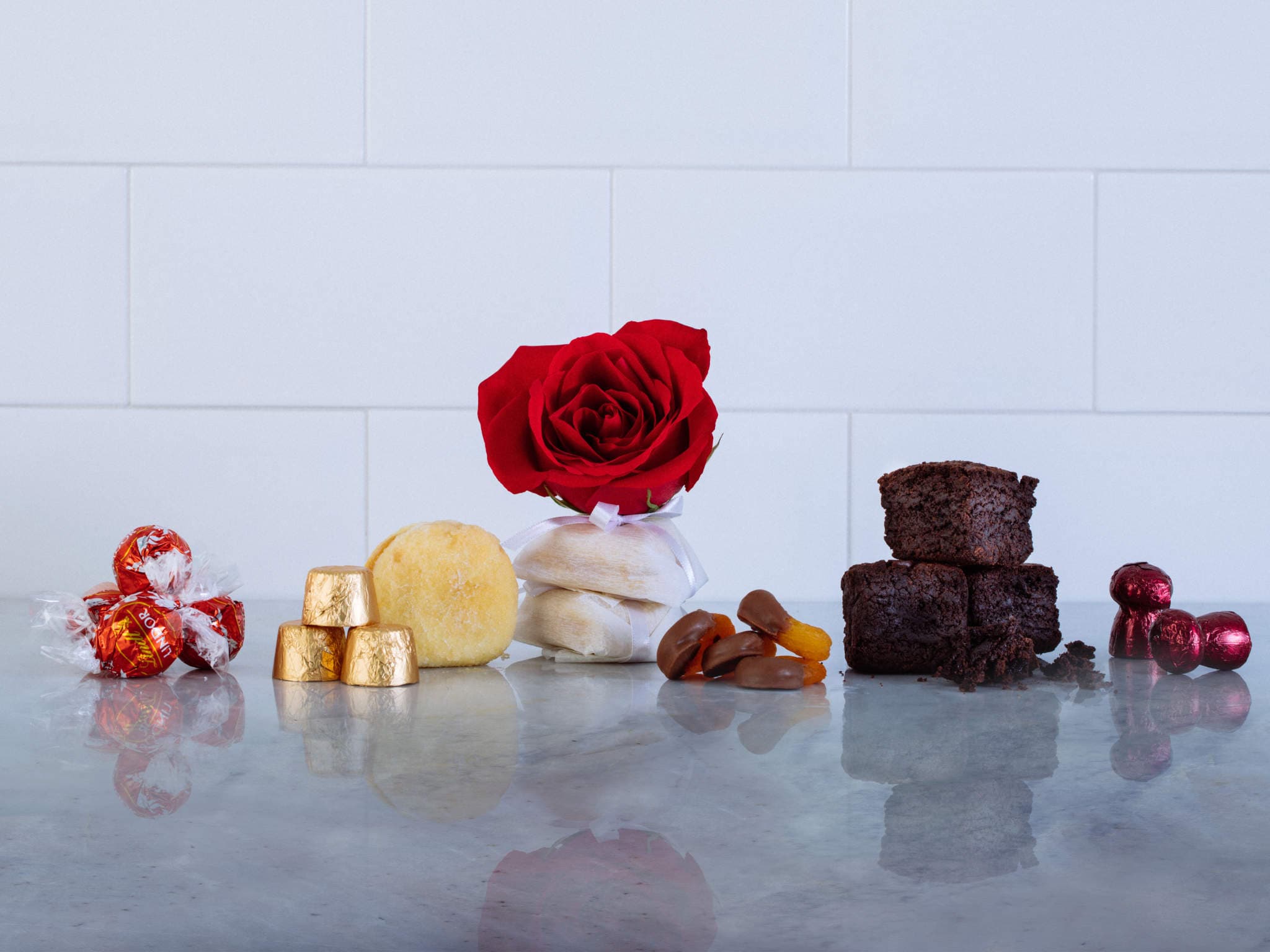 Cesta de Presente com Rosa Vermelha, Chocolates e Guloseimas