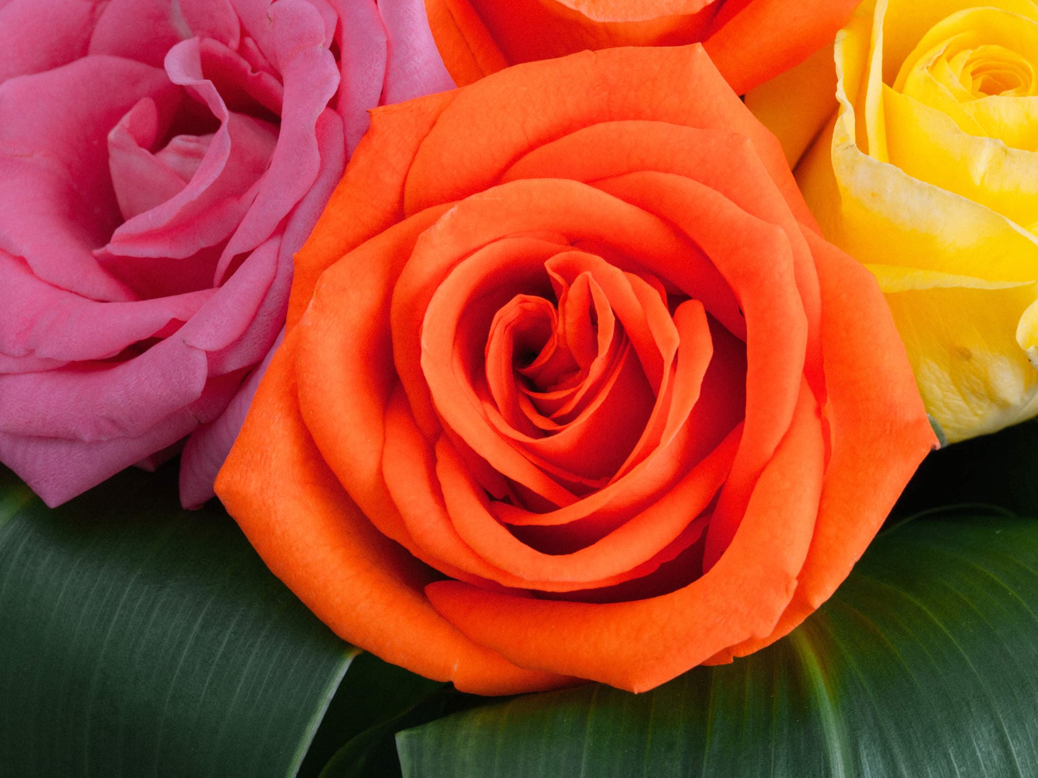 Buquê de Rosas Amarelas, Laranjas e Rosas com Folhas de Dracena. Composição cuidadosamente preparada pela Petalá com flores frescas selecionadas, embalagem premium e cartão personalizado. Entrega expressa para todo o Brasil.