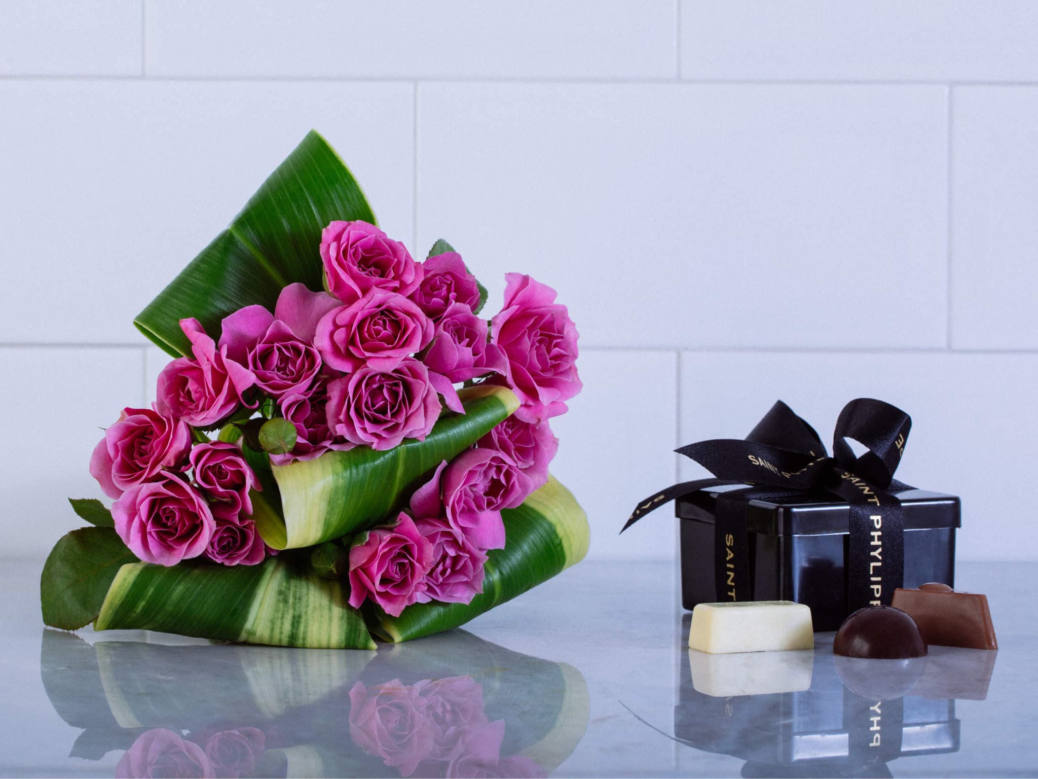Buquê de Rosas Lilás com Bombons de Chocolate Para Entrega. Composição cuidadosamente preparada pela Petalá com flores frescas selecionadas, embalagem premium e cartão personalizado. Entrega expressa para todo o Brasil.