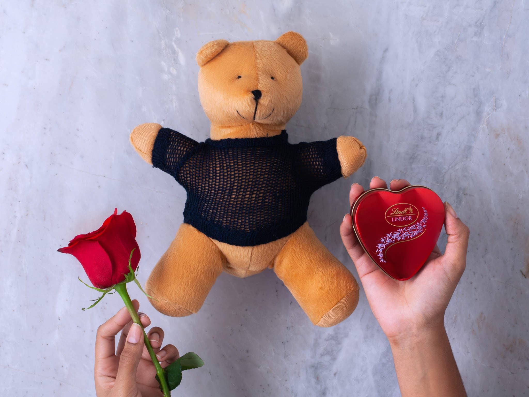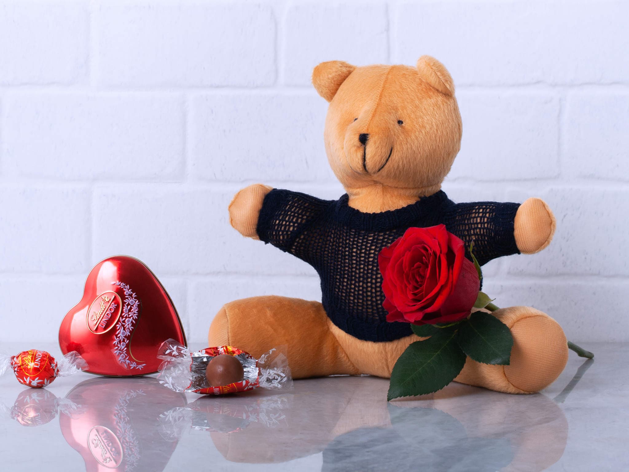 Rosa Vermelha, Chocolate Lindt e Urso de Pelúcia Para Entrega