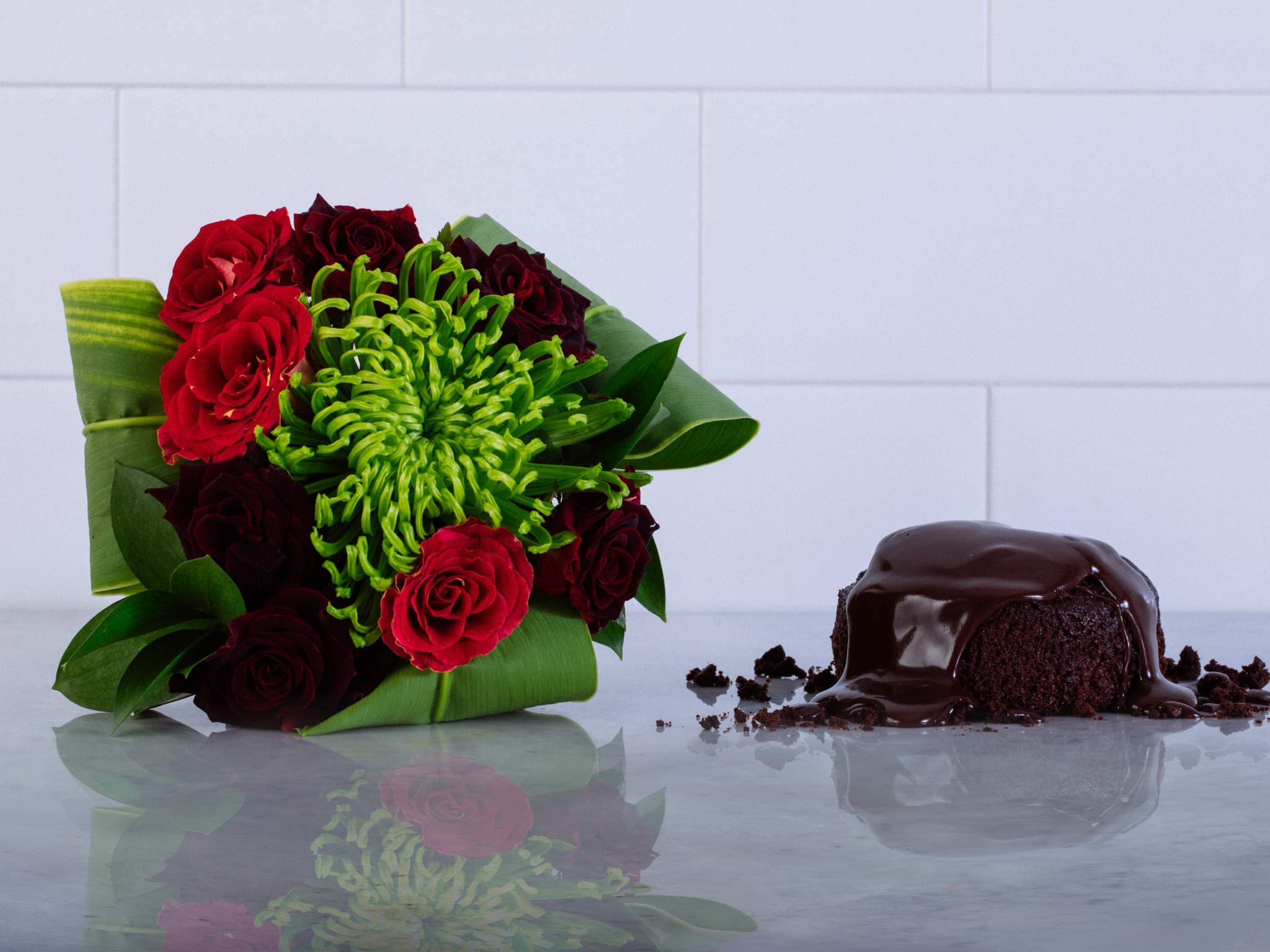Buquê de Flores com Bolo de Chocolate Brigadíssimo