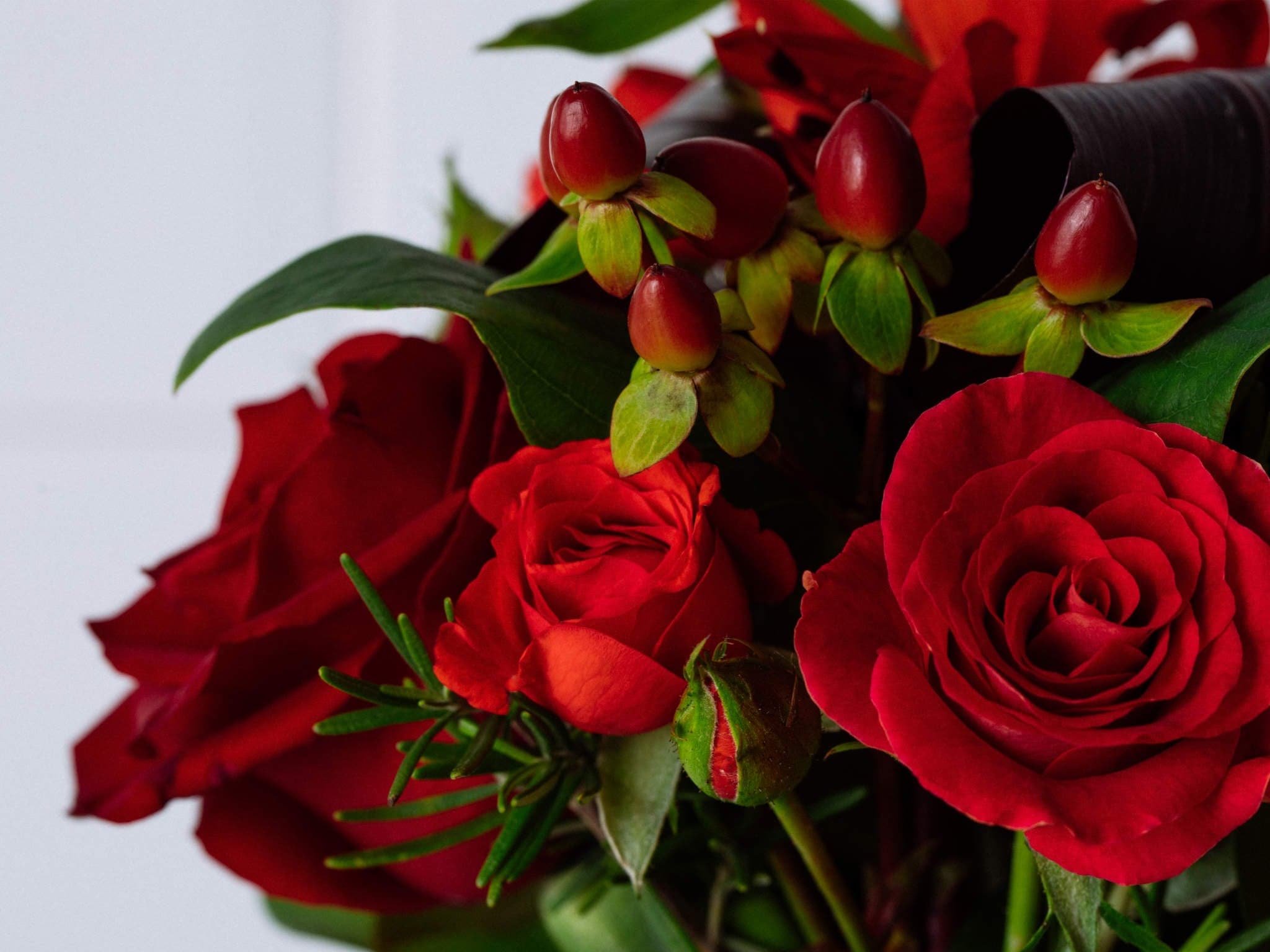 Arranjo de Rosas e Alstroemérias Vermelhas em Vaso de Vidro. Composição cuidadosamente preparada pela Petalá com flores frescas selecionadas, embalagem premium e cartão personalizado. Entrega expressa para todo o Brasil.