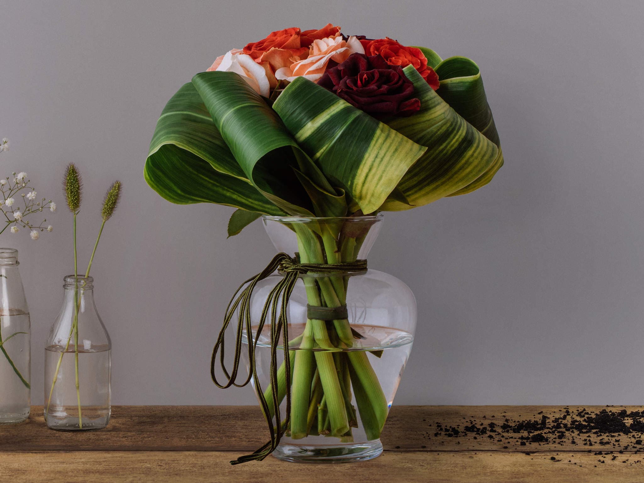 Arranjo de Rosas Coloridas em Vaso de Vidro