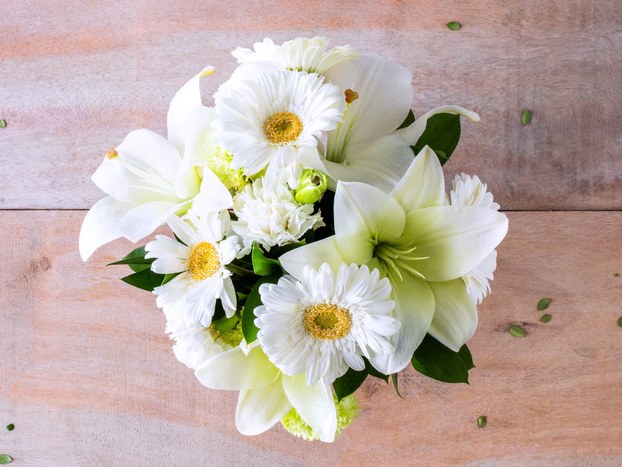 Caso alguma flor não esteja disponível na época, fazemos substituição equivalente em estilo e valor.