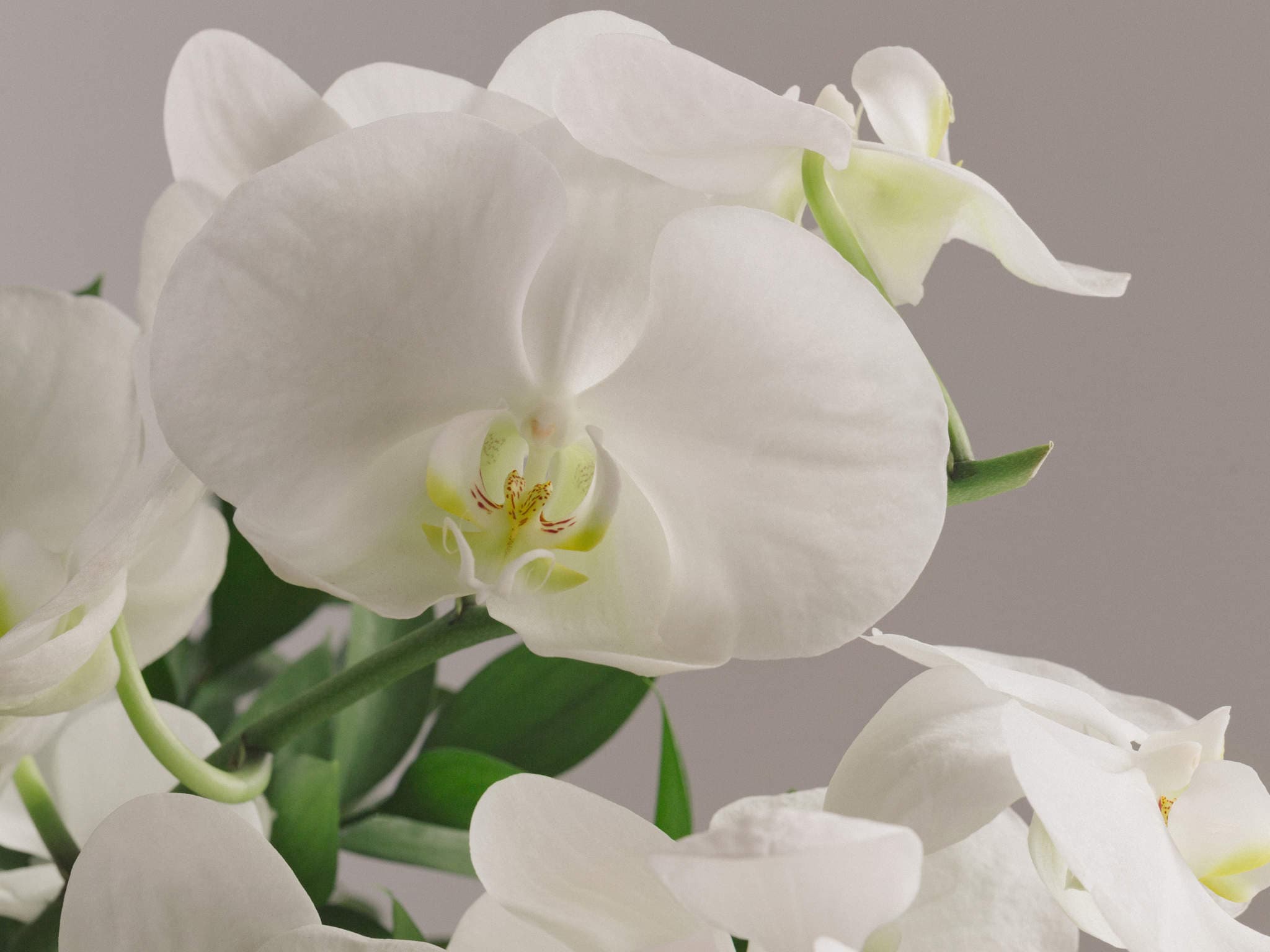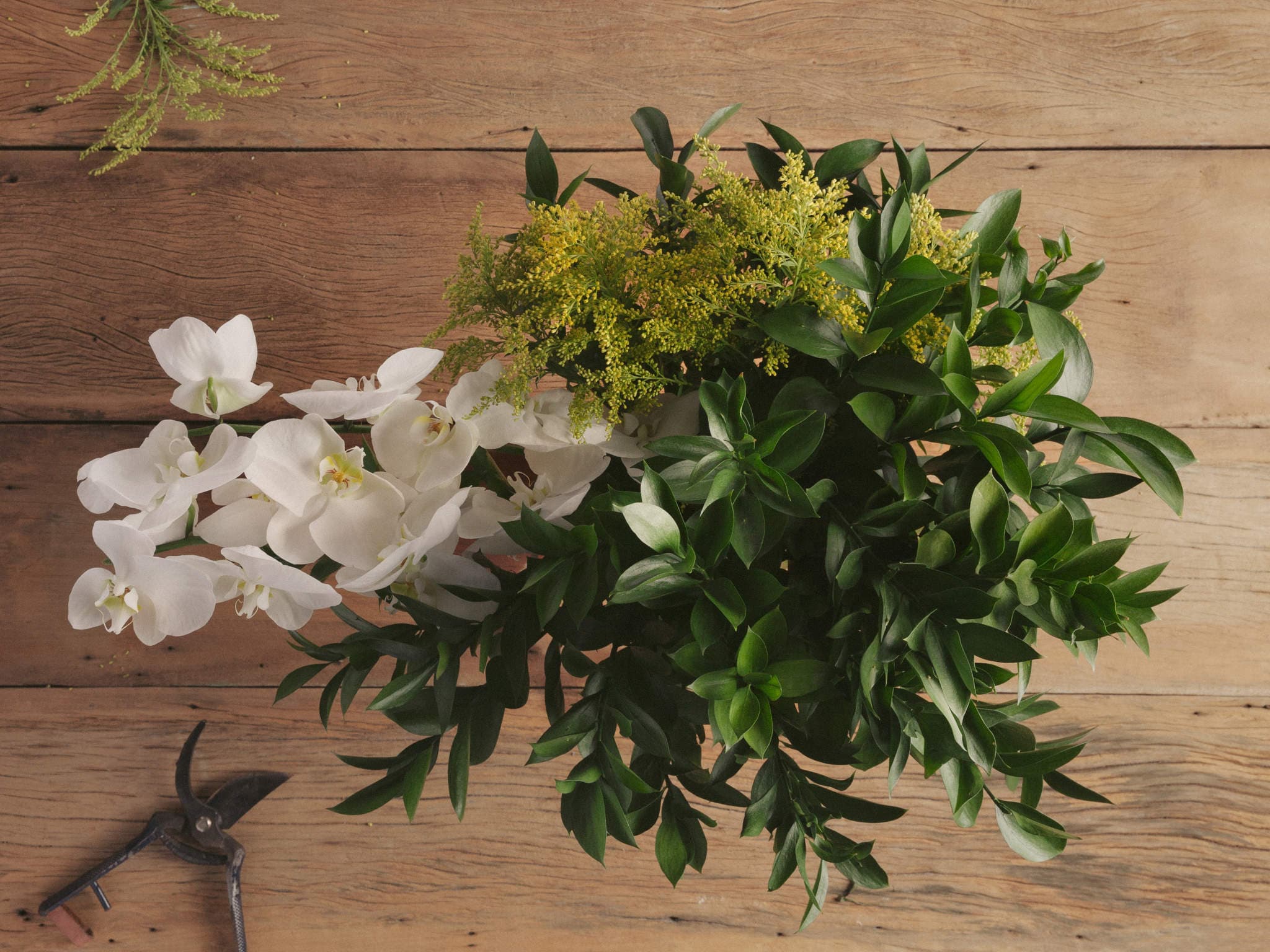 Arranjo de Orquídeas Brancas, Husco e Tango em Vaso com Junco. Composição cuidadosamente preparada pela Petalá com flores frescas selecionadas, embalagem premium e cartão personalizado. Entrega expressa para todo o Brasil.