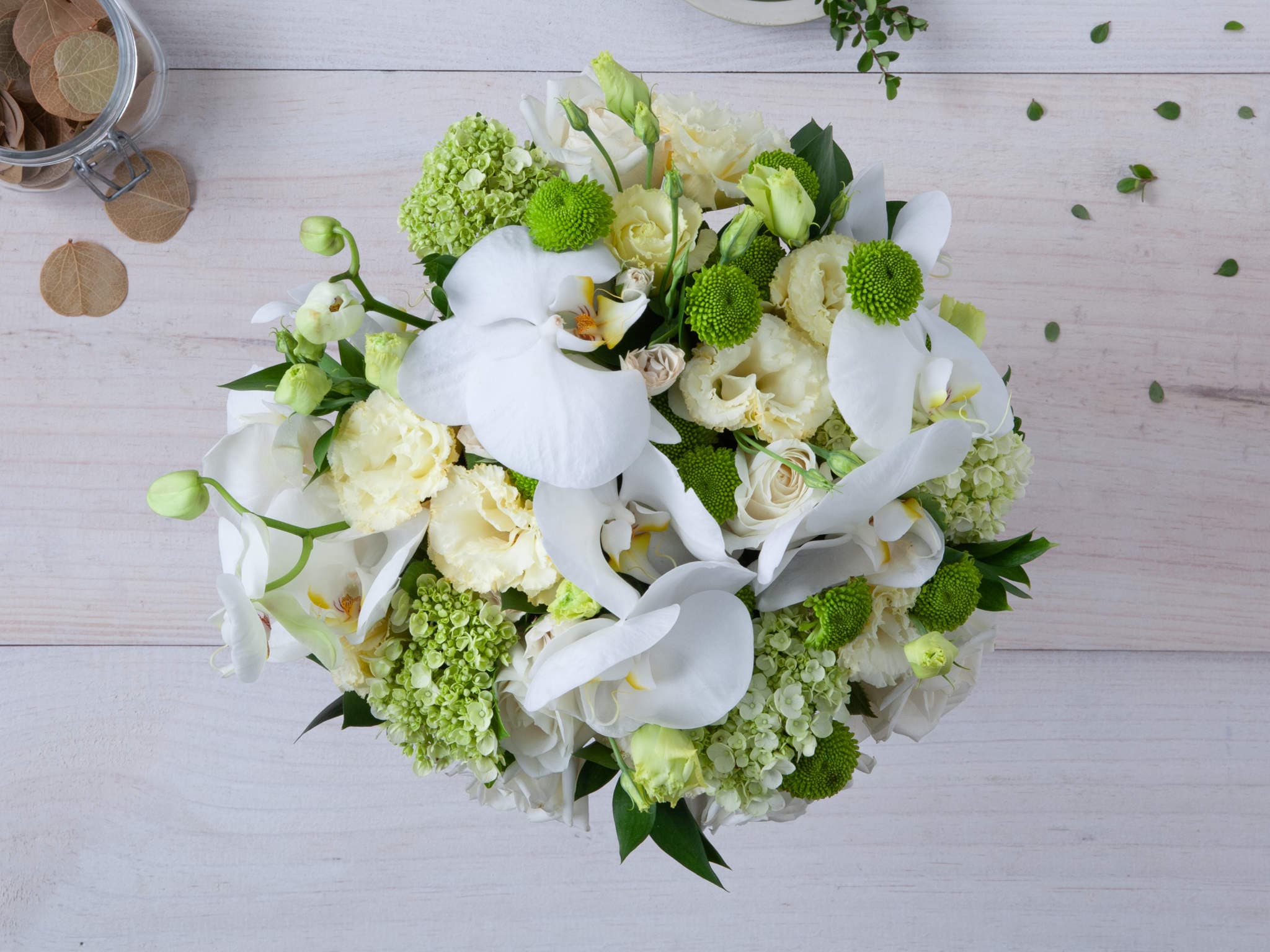 Caso alguma flor não esteja disponível na época, fazemos substituição equivalente em estilo e valor.