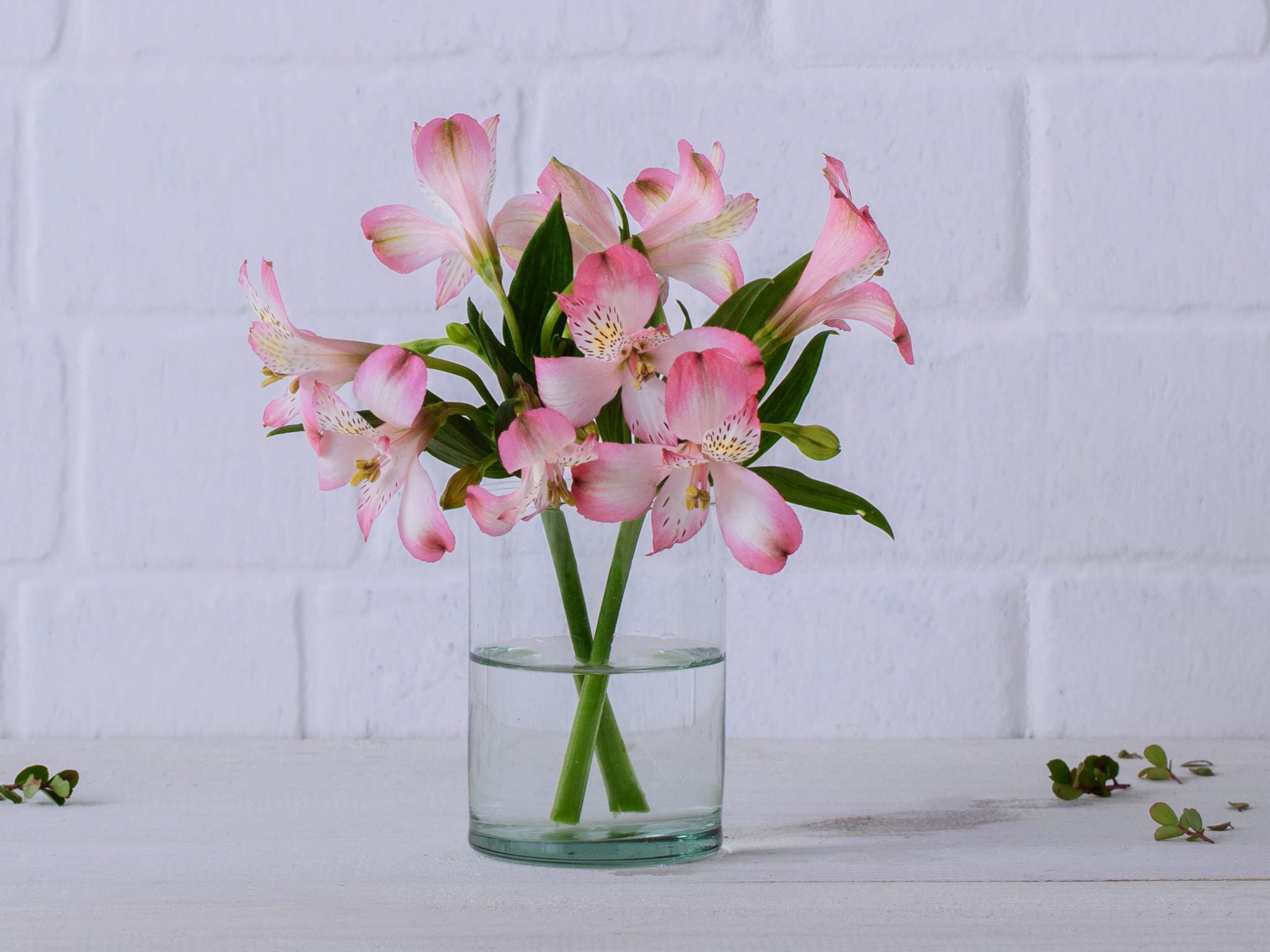Arranjo de Alstroemérias Rosas em Vaso Para Entrega. Composição cuidadosamente preparada pela Petalá com flores frescas selecionadas, embalagem premium e cartão personalizado. Entrega expressa para todo o Brasil.