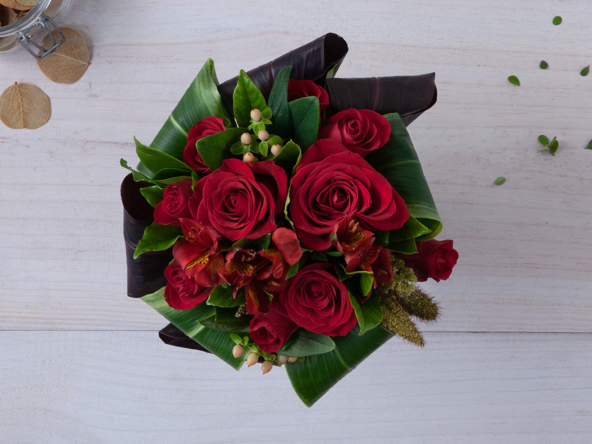 Arranjo de Flores Mistas Vermelhas em Vaso Para Entrega. Composição cuidadosamente preparada pela Petalá com flores frescas selecionadas, embalagem premium e cartão personalizado. Entrega expressa para todo o Brasil.